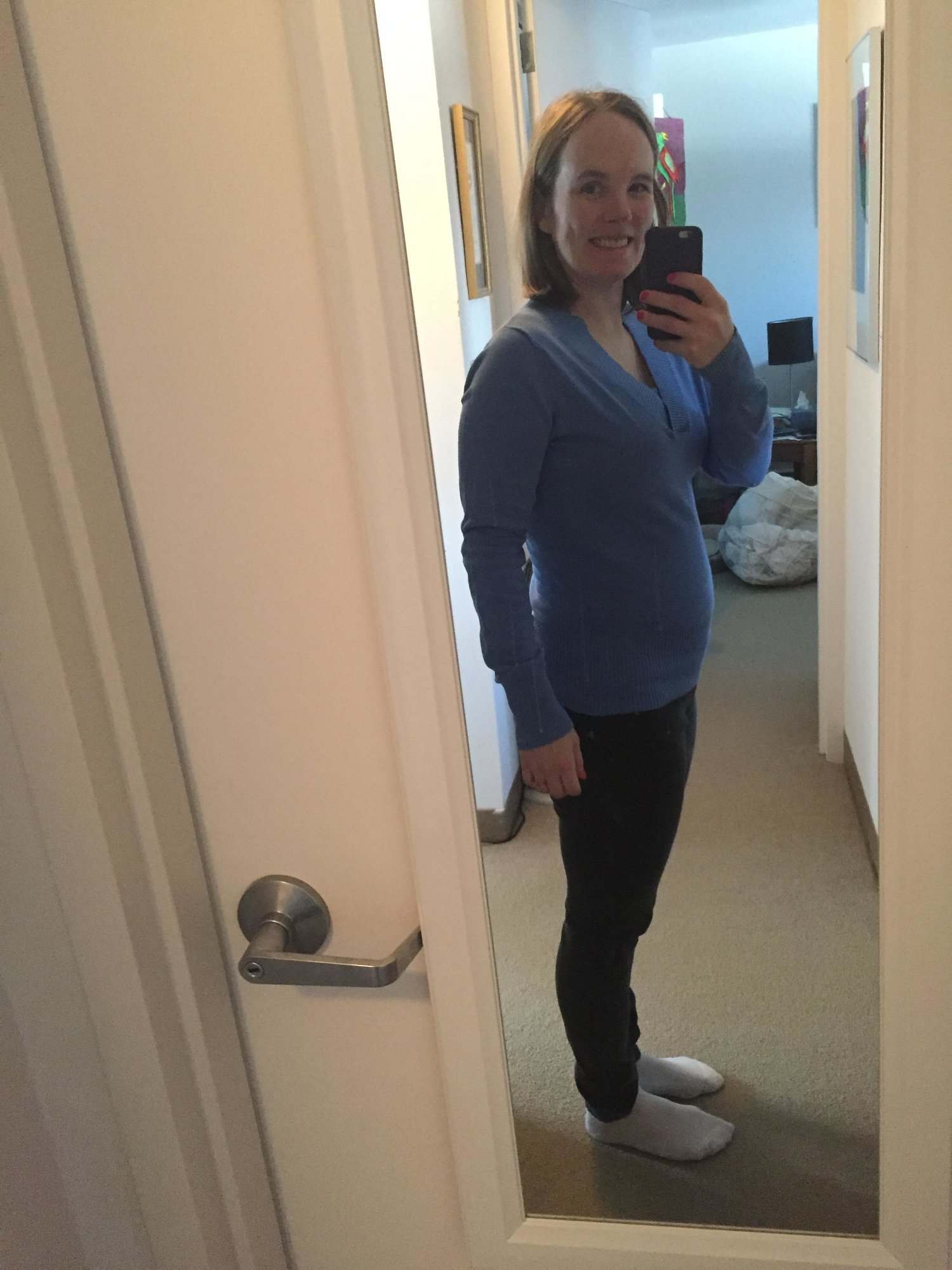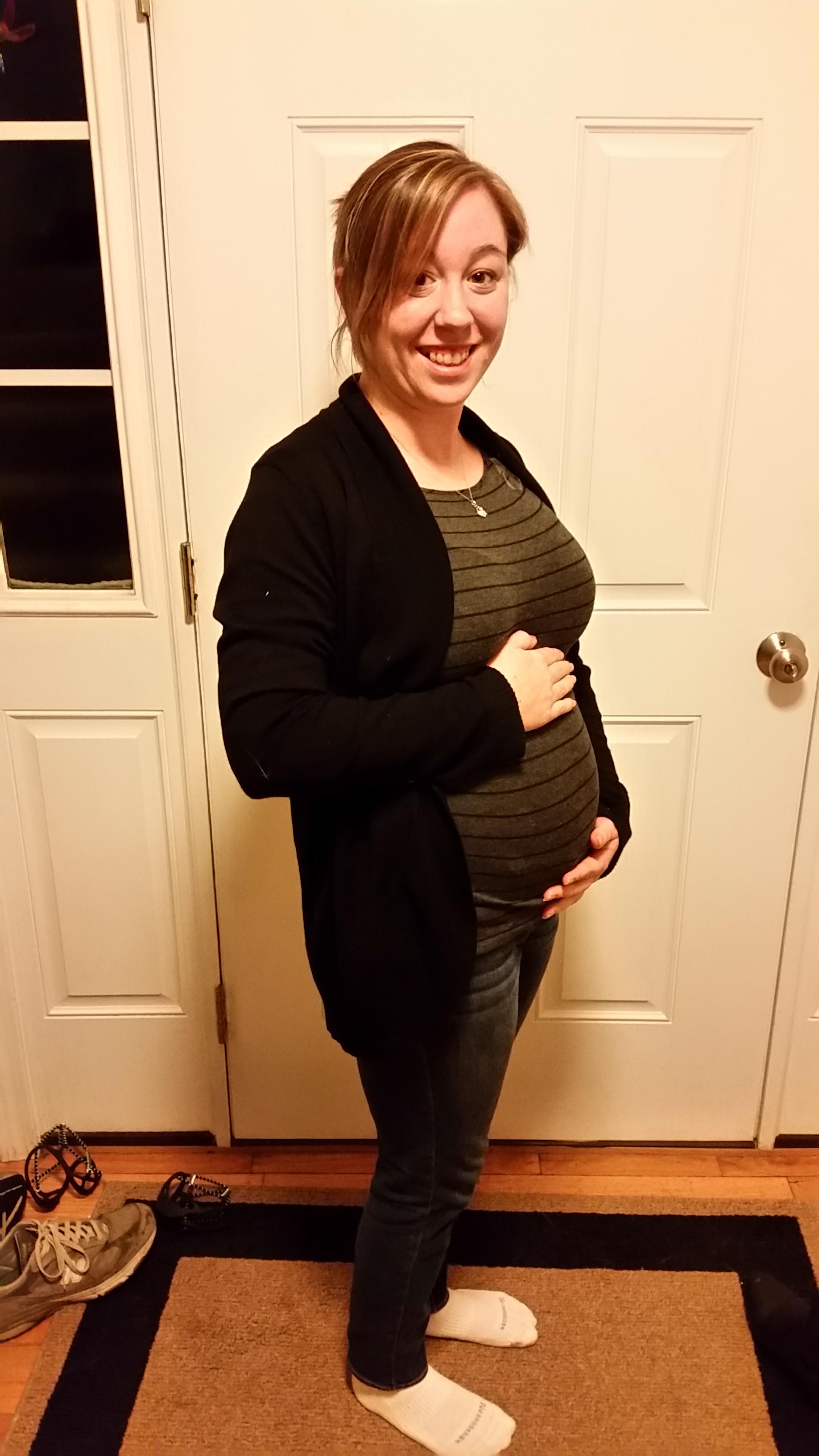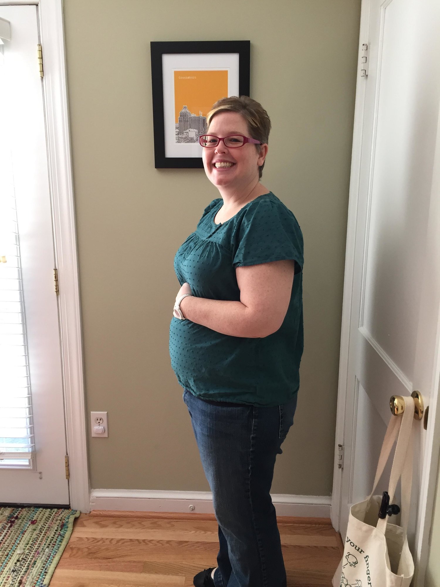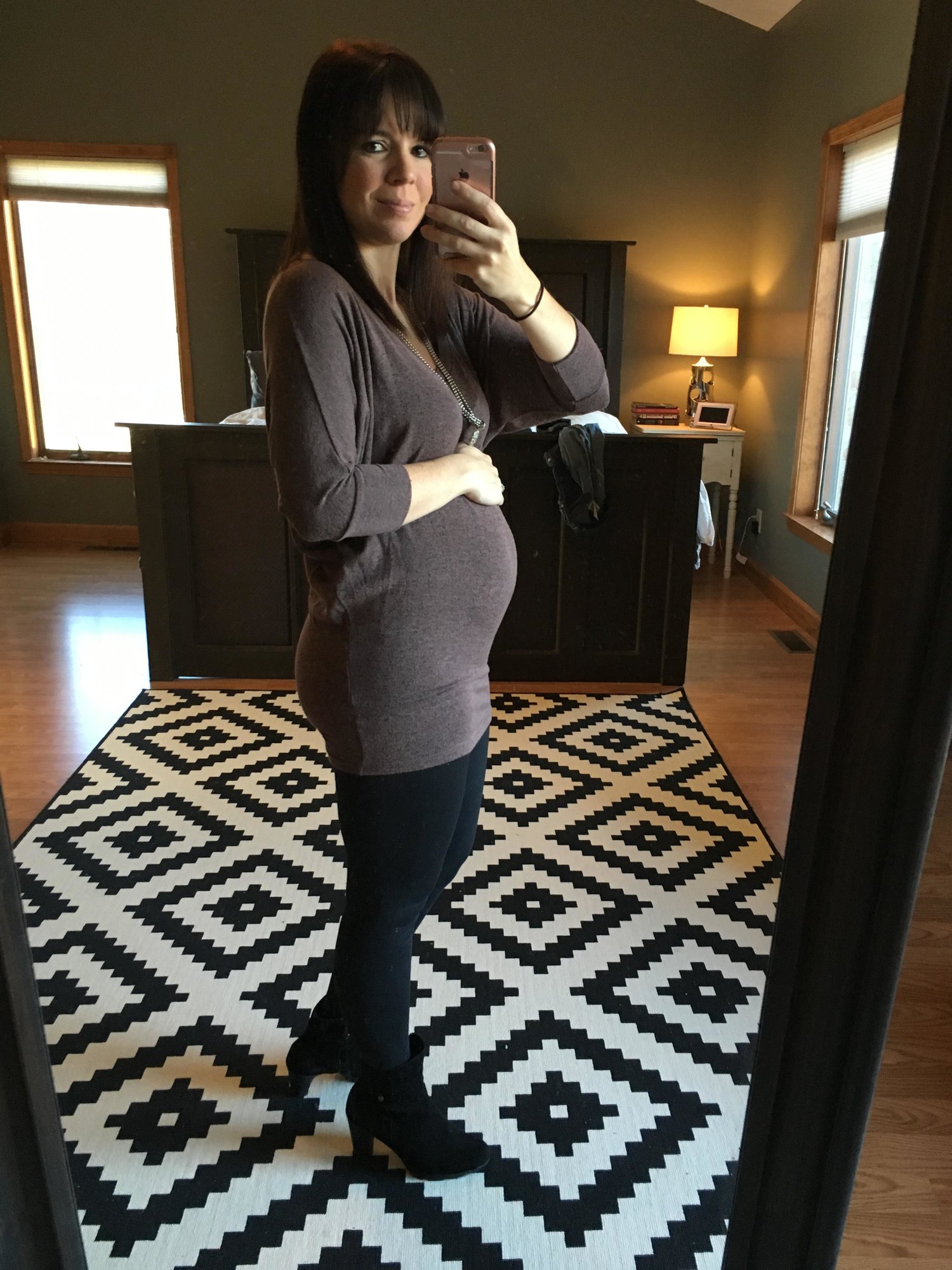 Wearing a loose top made this difficult, & this was the best I could get, lol. (Note: the walls were that colour when we moved in, I swear! It's going to be the nursery & new paint is going on this month..woo!) FTM 15 + 4