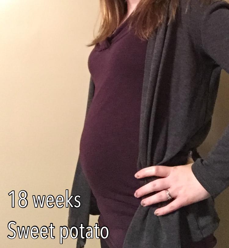 I'm 18 weeks and 2 days today. It doesn't look like much but she slowly allowing me to have a bump. Sometimes I feel like that's more a food bump than baby bump but I'll take what I can get.