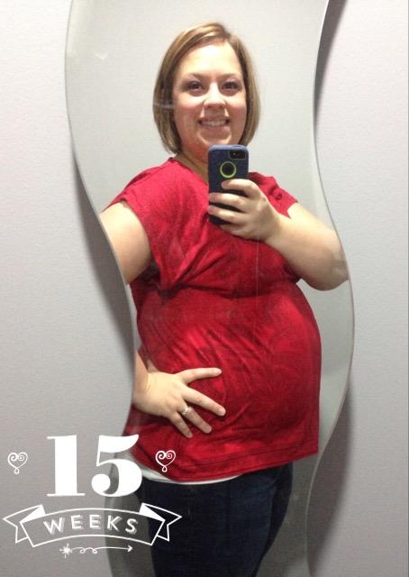 Here is my bump at 15+4 and FTM. Sometimes I feel like I just look flabby Also I took a pic yesterday (when my back was hurting) and today (back is not hurting) and my bump is noticeably further out today...is it possible the baby sits more in my back some days or is it just coincidence?