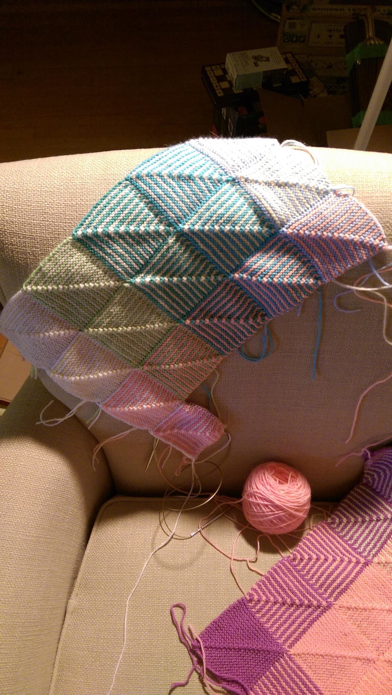 2. Hoping to finish the second quadrant and start on the third by the end of the weekend. After this blanket is done, I'm making another one in the same pattern for a friend who's due 7 weeks after I am, so I'm really starting to feel the pressure to pick up the pace!