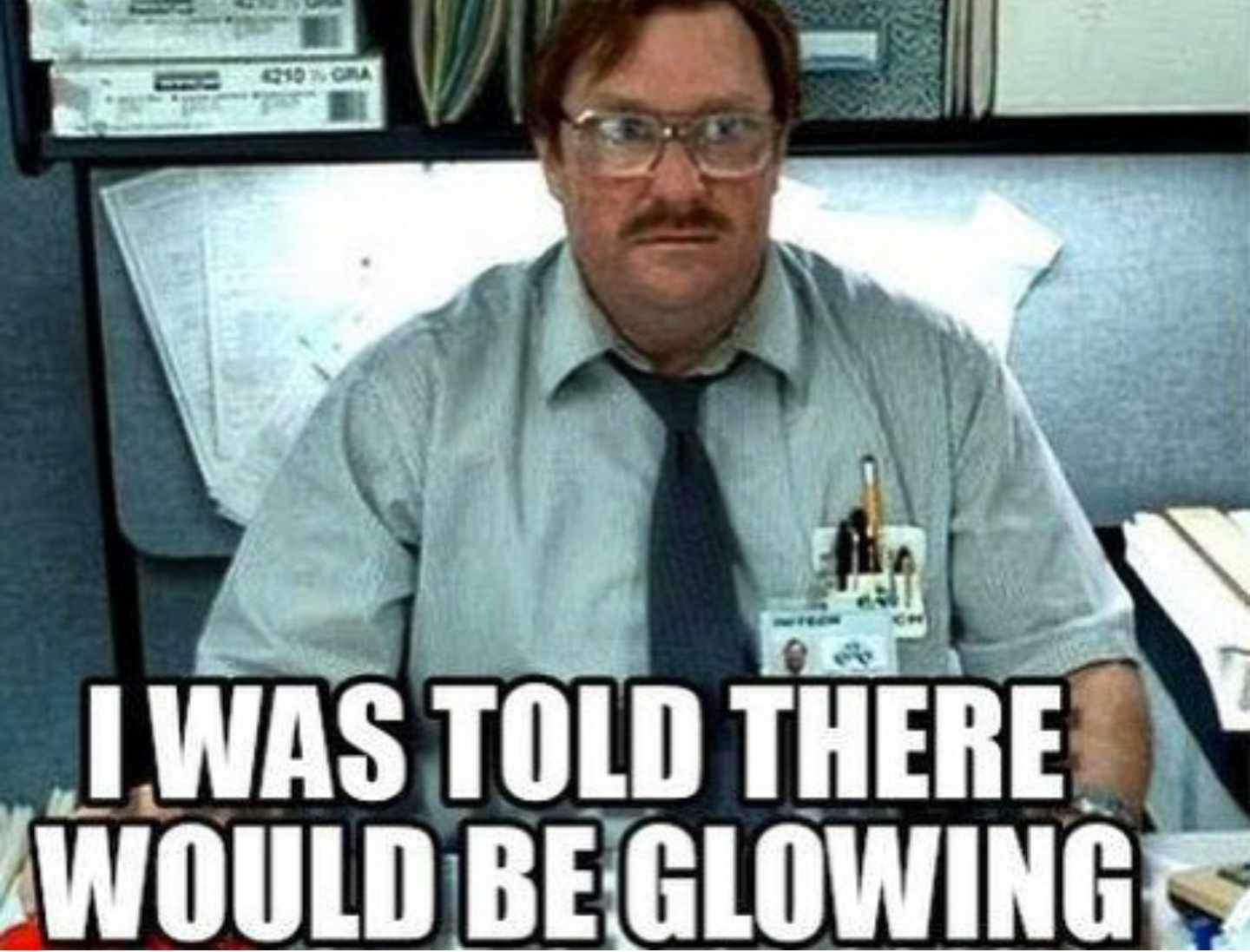 A co-worker of mine told me I was glowing...I laughed in her face (which probably wasn't very nice). I might be glowering at times but I'm certainly not glowing.