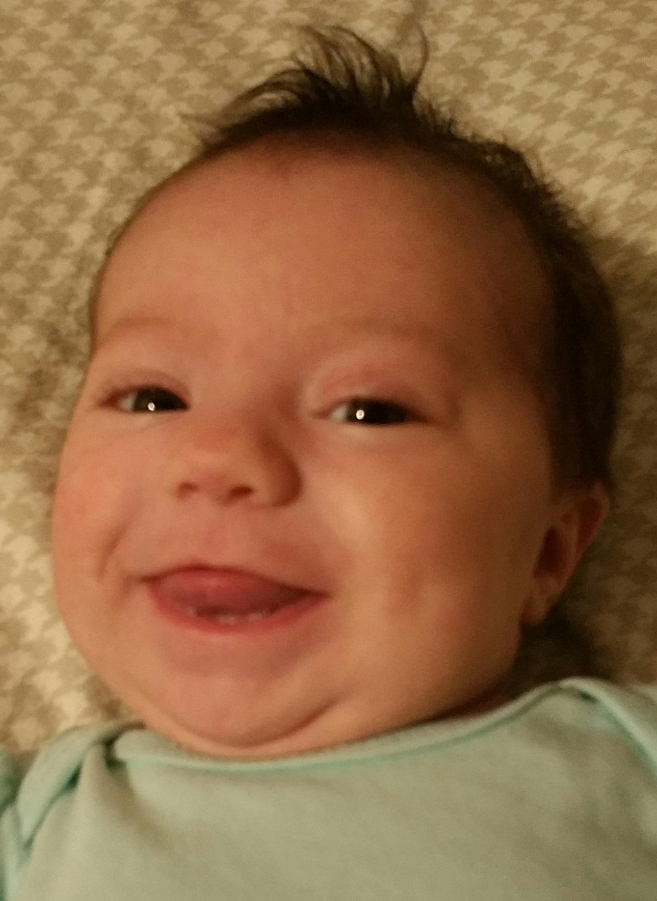 This is the look we now get all the time with diaper changes.