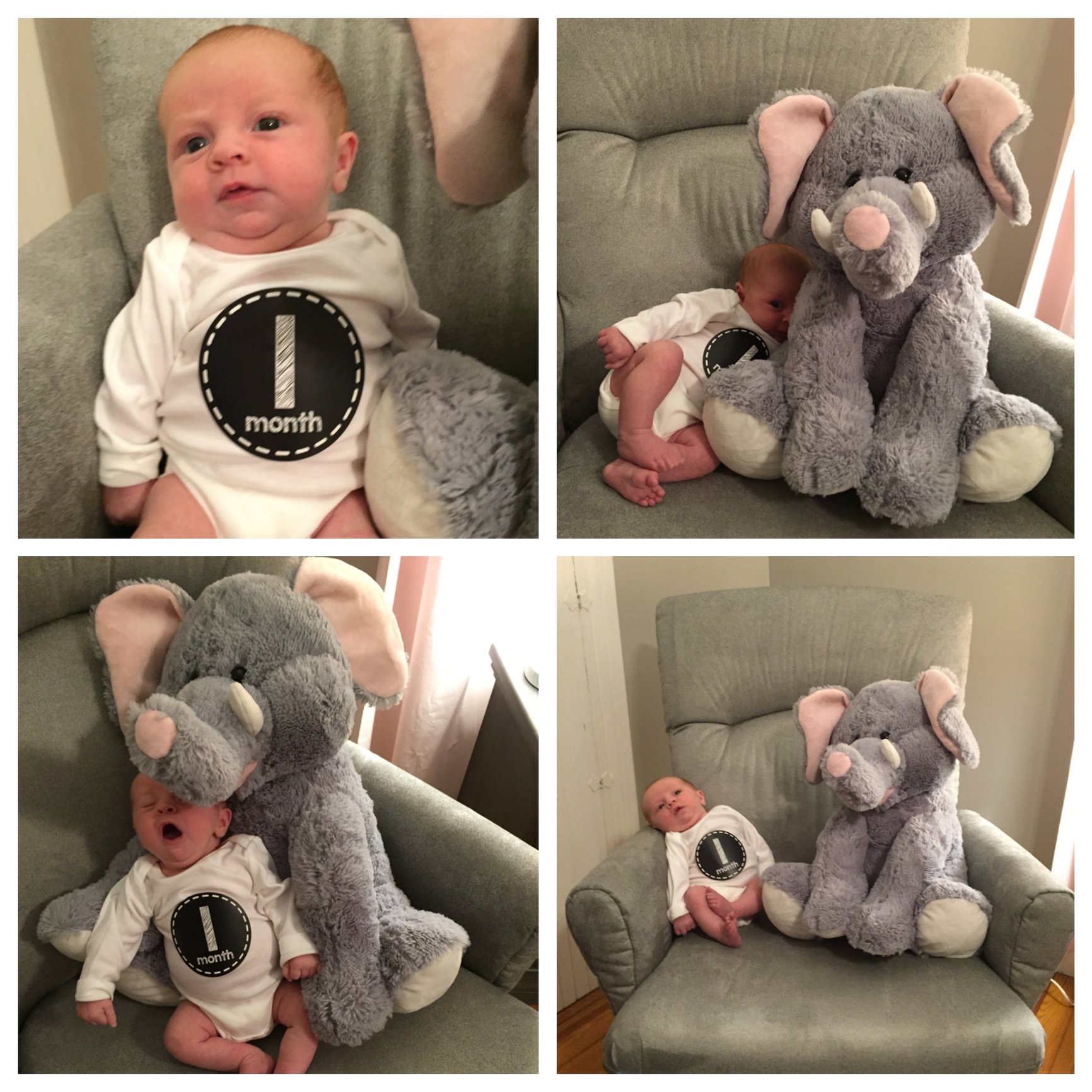 We also struggled with 1 month photos. Blooper reel!