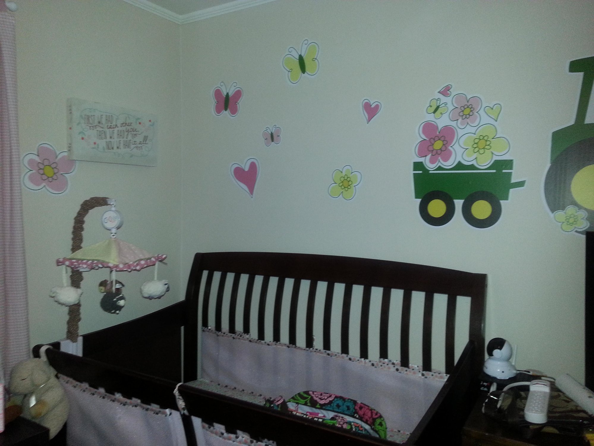 Fast Forward...DD2 wasn't exactly planned so the spacing is closer than we thought it would be and there's no way we're moving DD1 out of a crib so she's staying put. We just moved DD2 (sorry so confusing) out of a bassinet in our room and into her new room in a pack-and-play, and we haven't done a thing to her room. My husband won't budge on painting the room for her since it's so newly painted, so it's blue, but a very pale pretty blue. We are getting a hand-me-down pale yellow crib. I'd like to decorate her room in pale blues/pale yellows/pale pinks to girl it up a bit, but I'm terrible with decorating and would love some input. I've been all over pinterest and etsy and I just can't find things that are striking to me.
