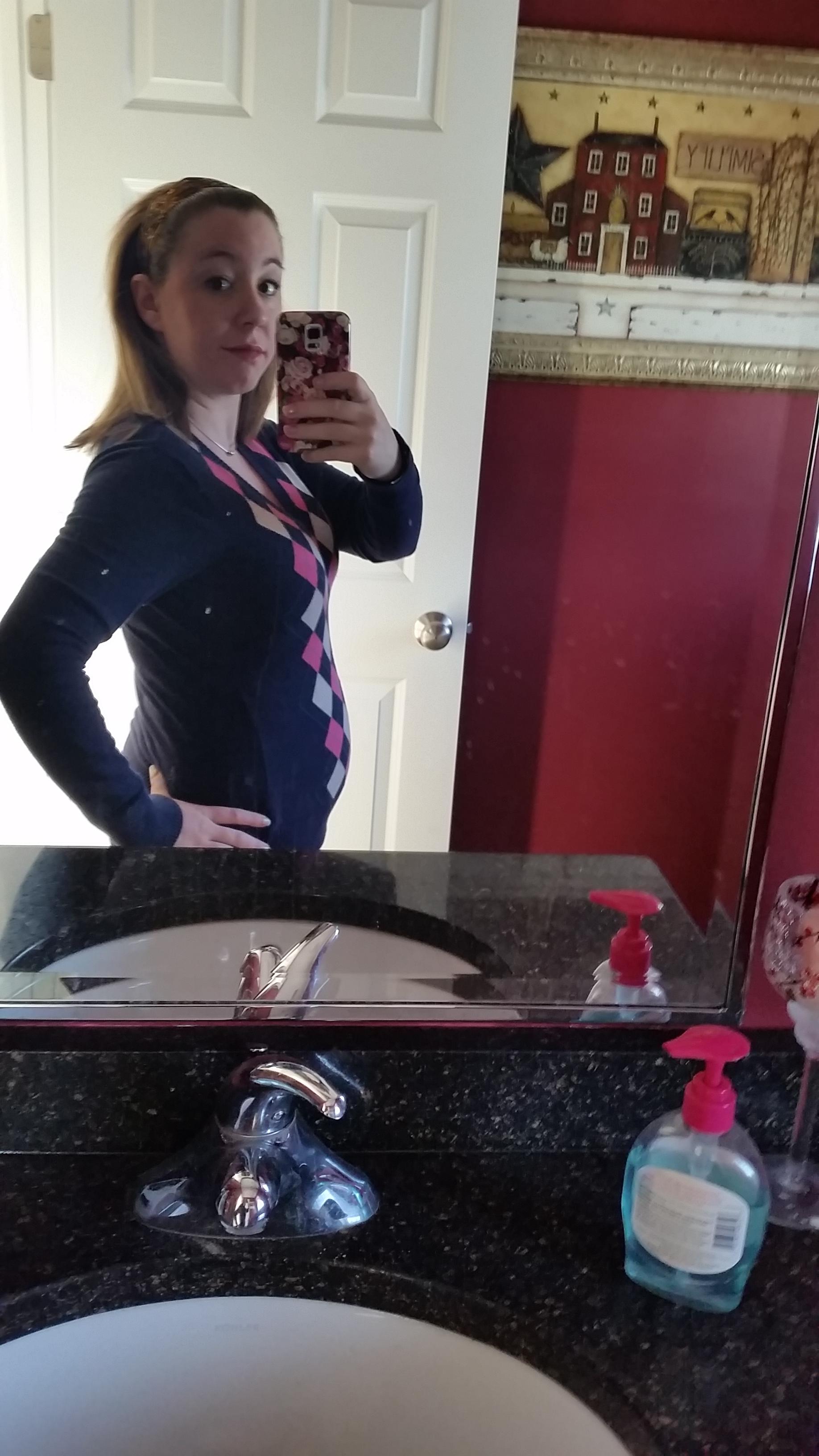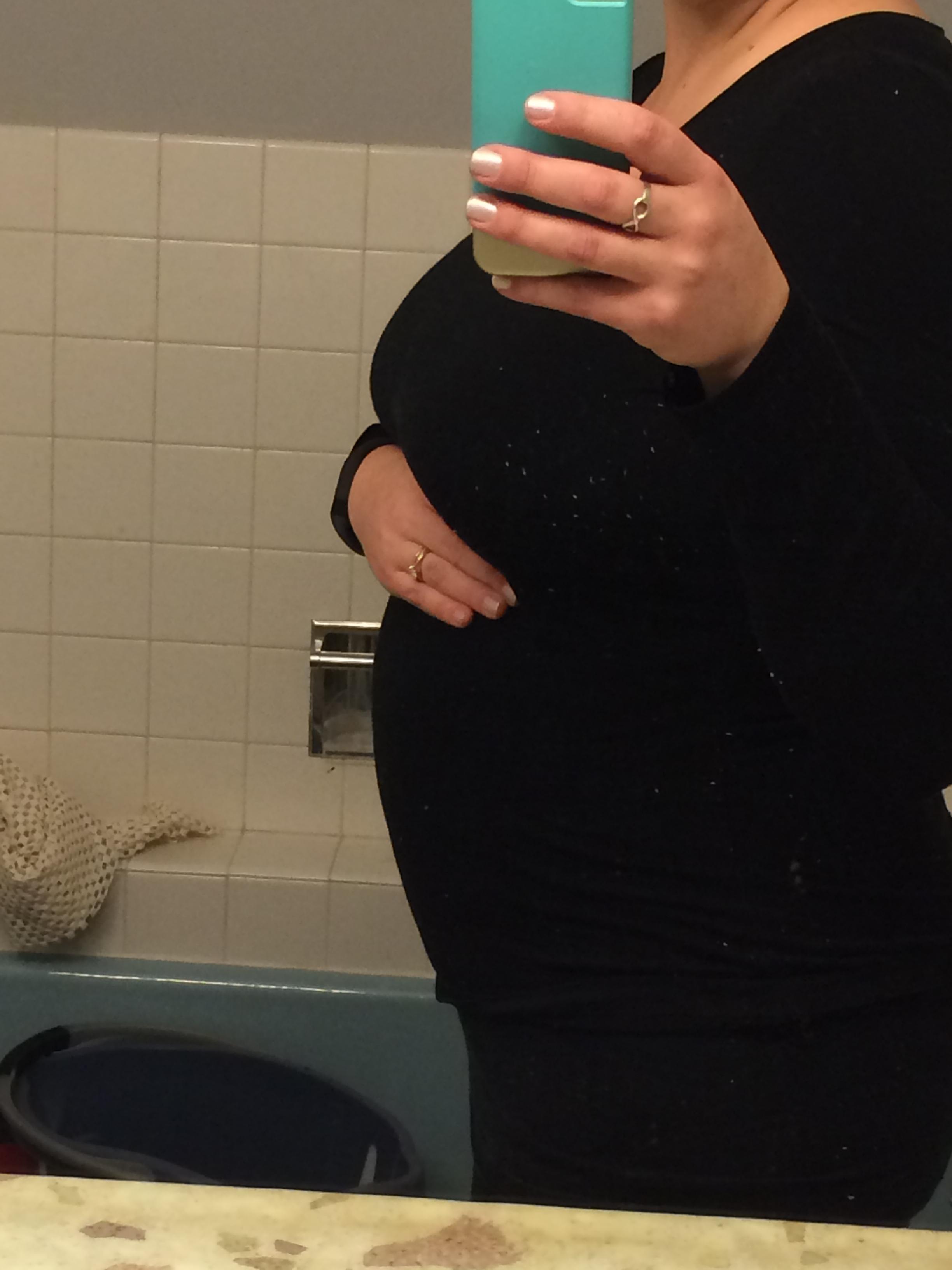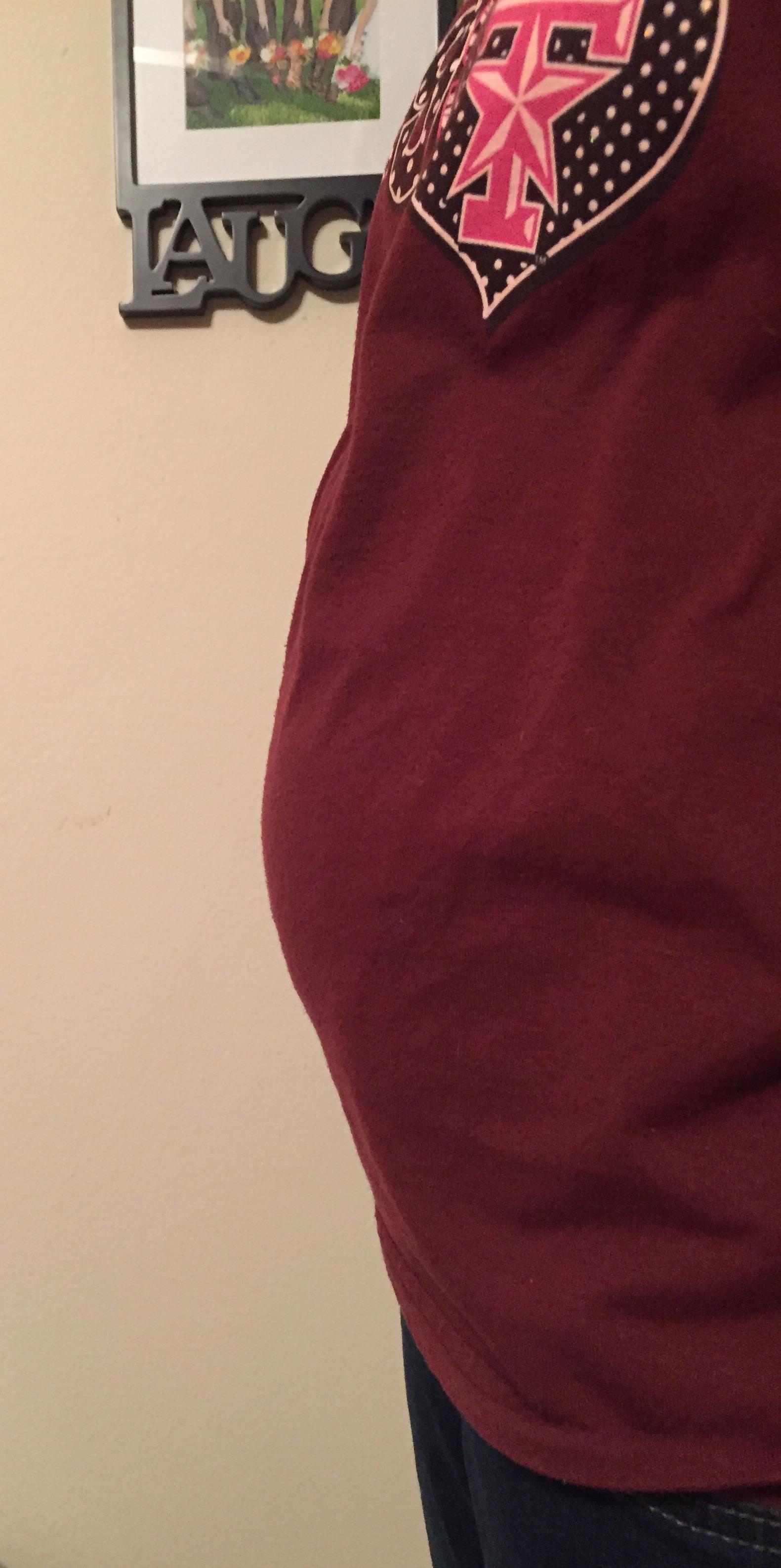 This is great. I am a big girl so my bump is hidden nicely in my ... fluff... it is really nice to see all of yours so I have an idea of how pregnant I am lol.