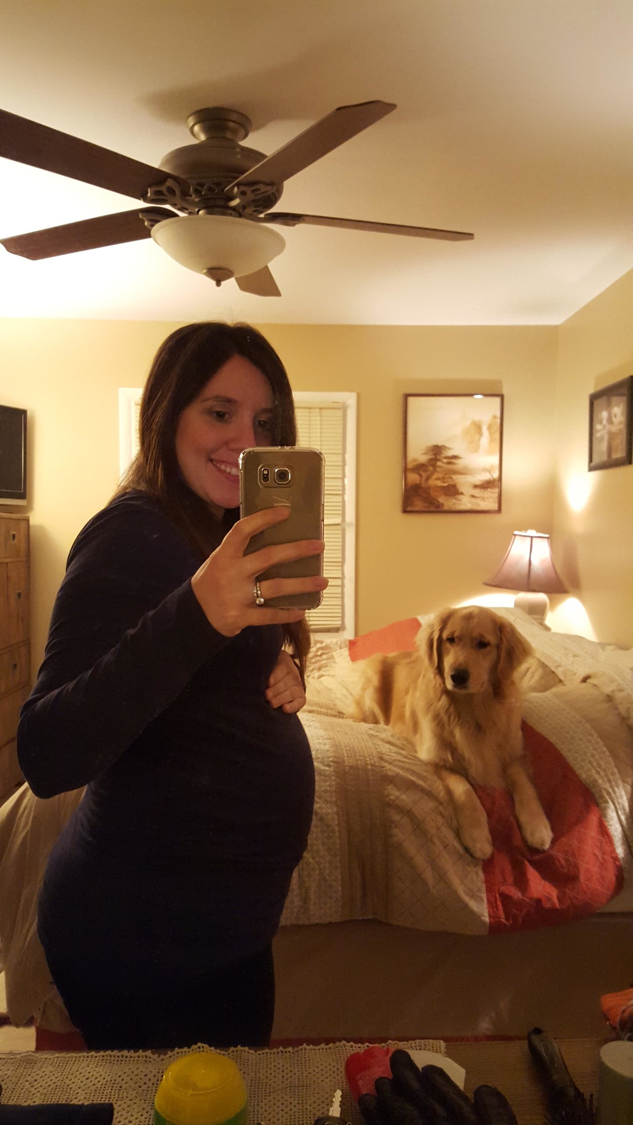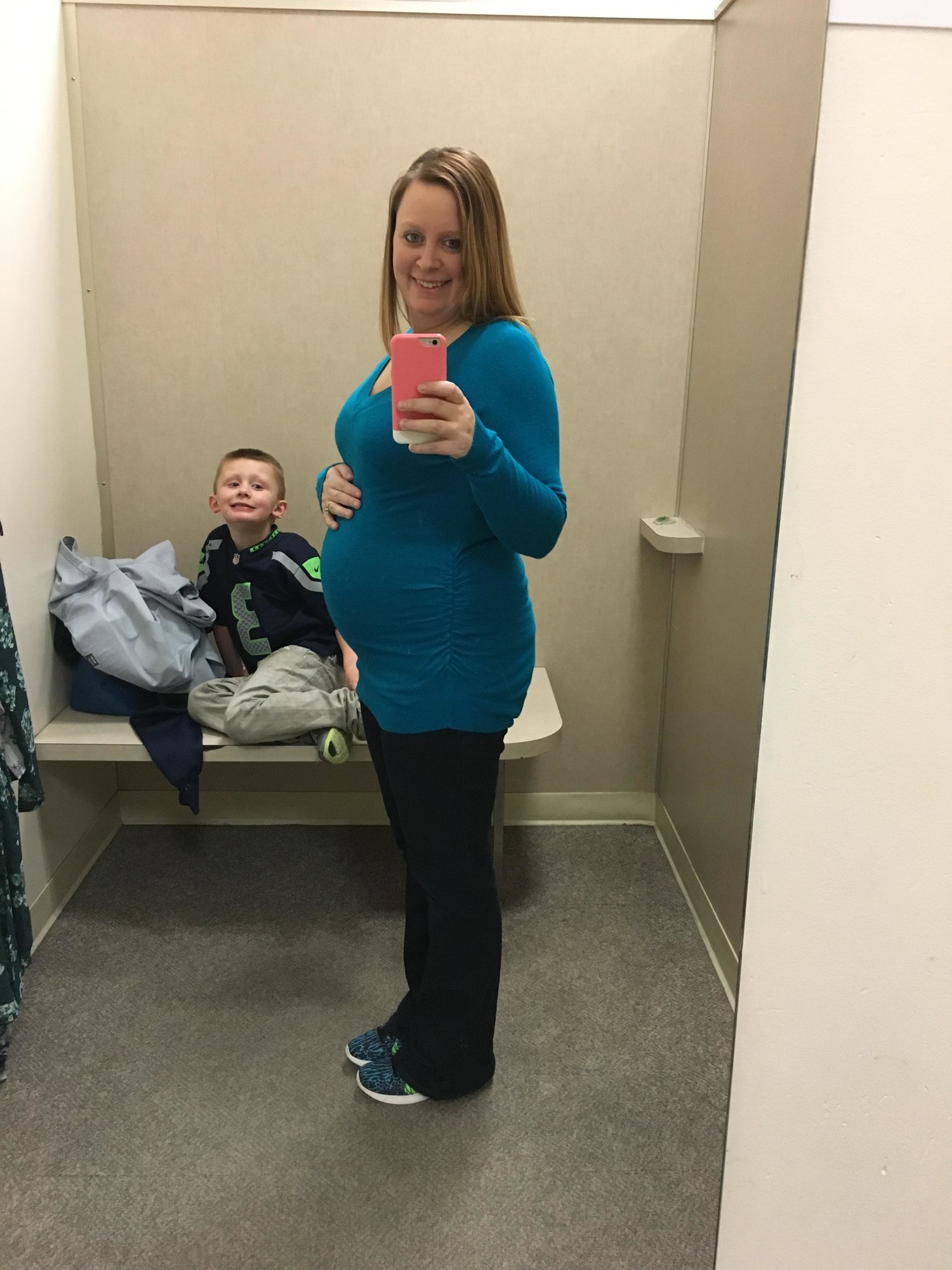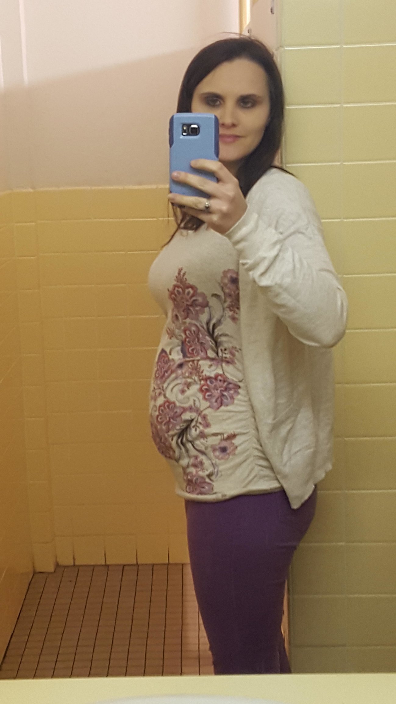 This is great. I am a big girl so my bump is hidden nicely in my ... fluff... it is really nice to see all of yours so I have an idea of how pregnant I am lol.