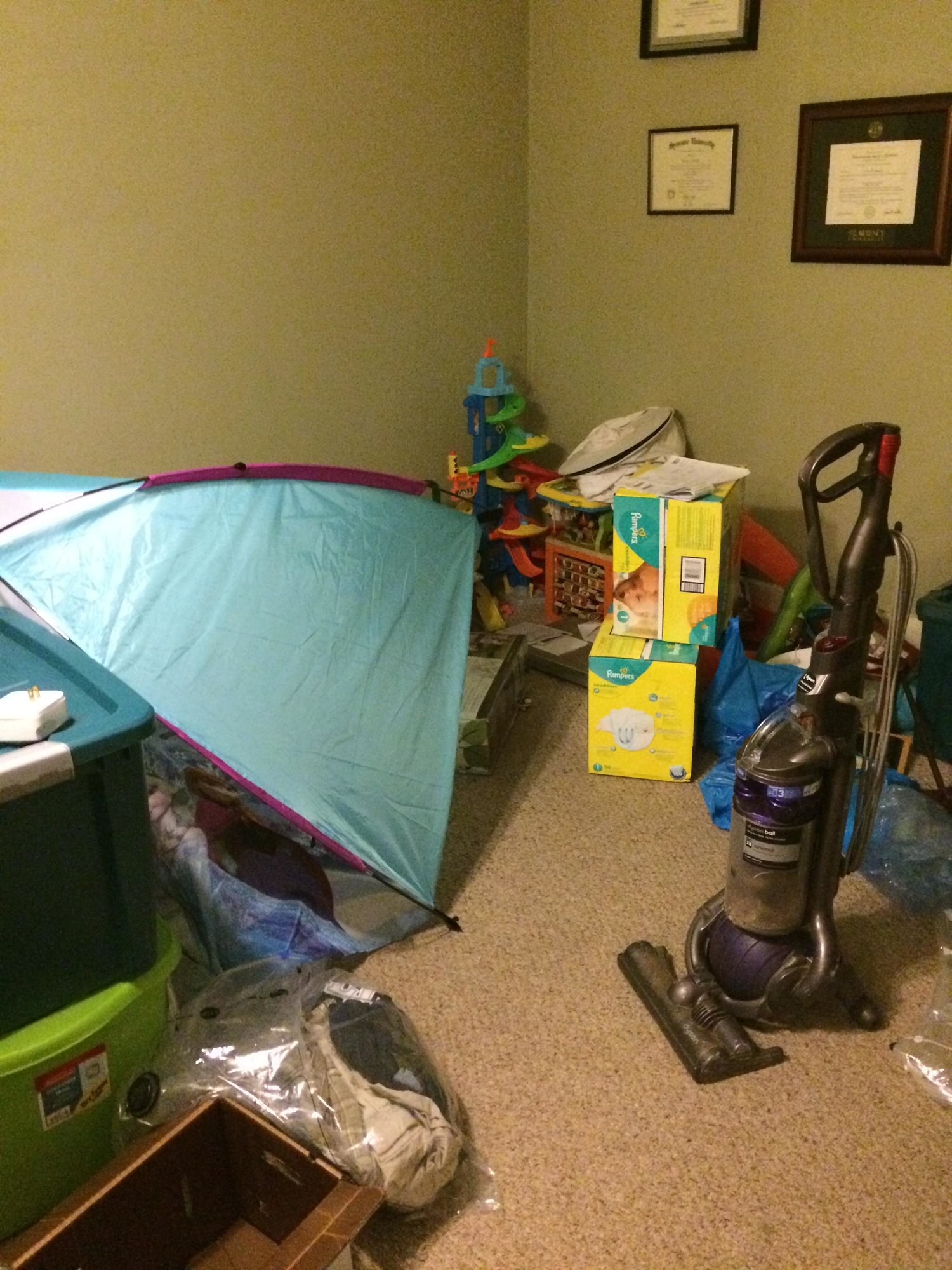 Almost 30 weeks with baby #4 and her room is still being utilized as the guest room/catch all room. We need to move out a full size bed and dresser, as well as go through the rest of our boxes from moving in June and multiple bins of baby clothes and whatnot. I just don't have the energy to do it!