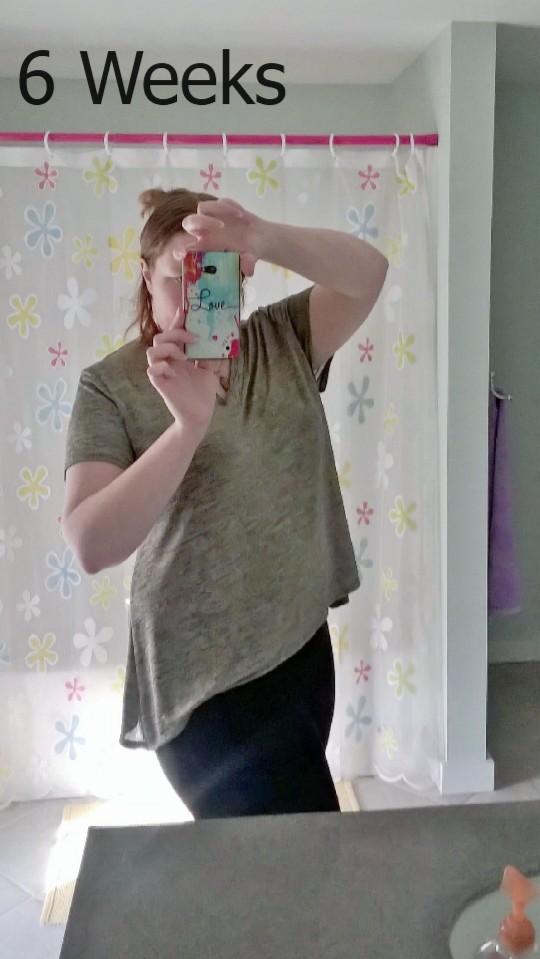 My bloat actually went down and I lost 3 lbs! That's what happens when you are nauseous I guess. I think it'll be quite a while before I can see anything. I carry most of my excess weight in my stomach anyway so right now it's just fat covering it! Everyone else looks so cute!