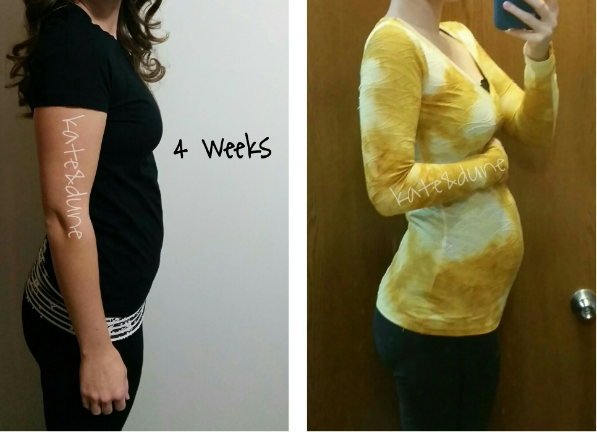 4 weeks vs 13 weeks with baby number 1. Bloat or not it's all from the baby. I've only gained 2 pounds, but belly has increased by 5 inches around. (edited to downsize photo)