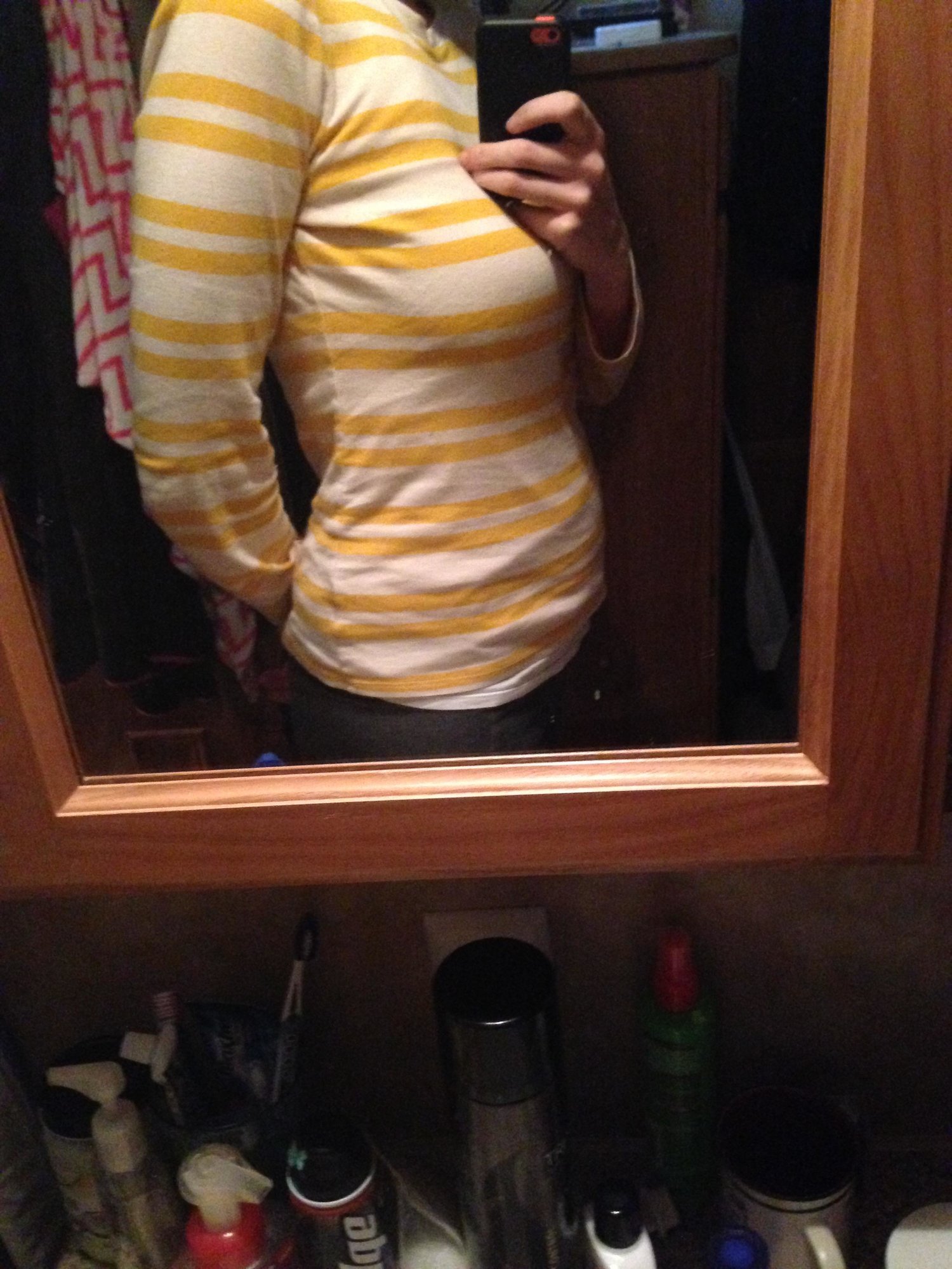 Don't mind me holding my ninnies lol I think the purpose was to cover my breasts for the picture, but I was unsuccessful at that. This was a couple of days ago. I am 13 weeks tomorrow!!