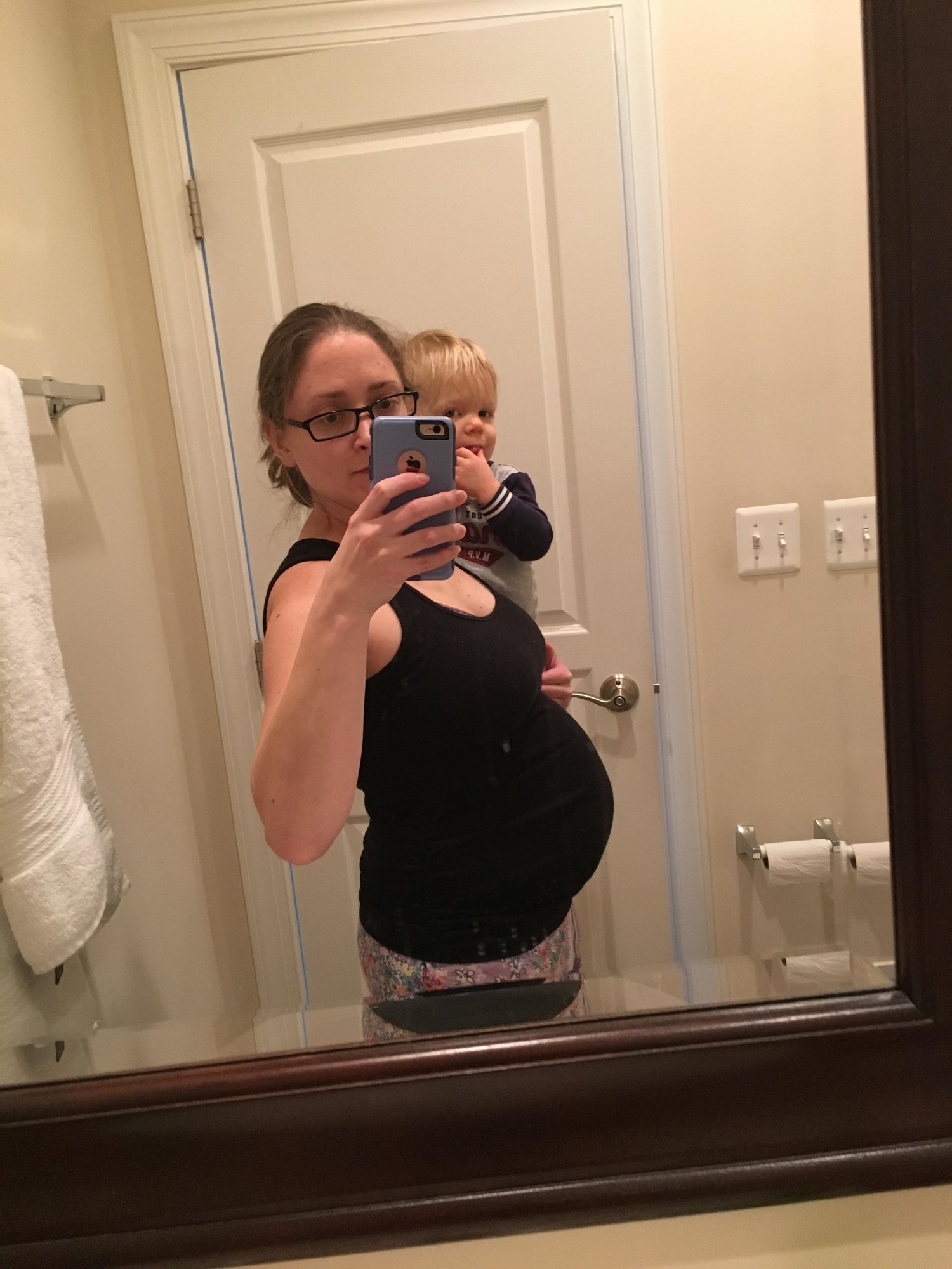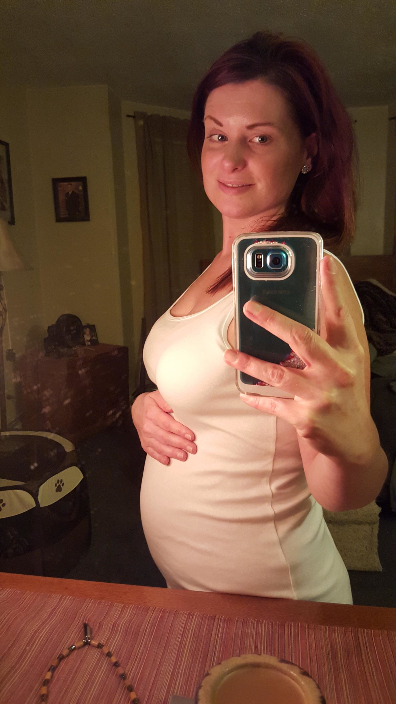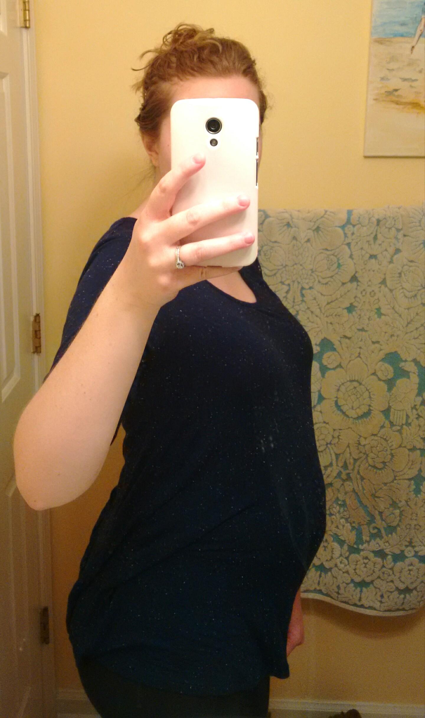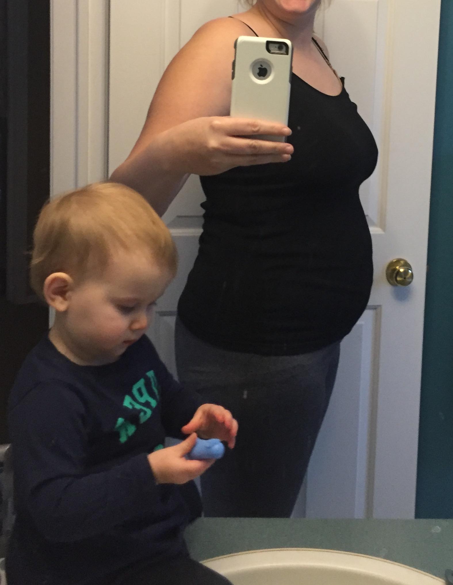 Another first-time-poster. 17+1 today with ds #2. I have a short torso and always gain weight in my belly first, so I look extra bulbous!