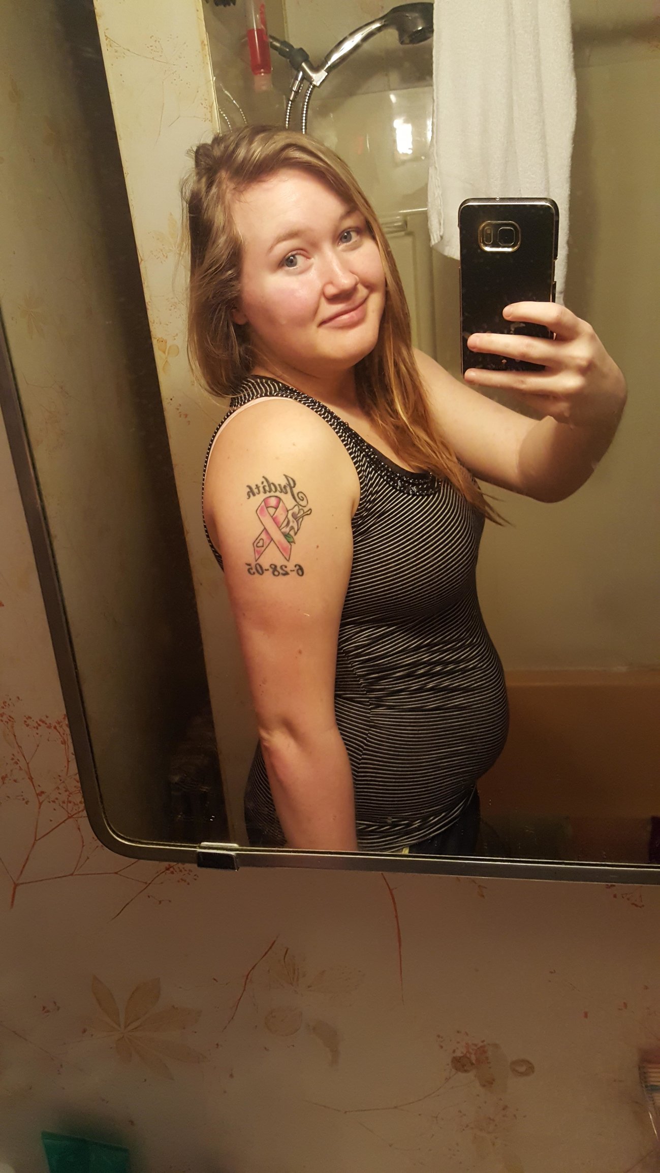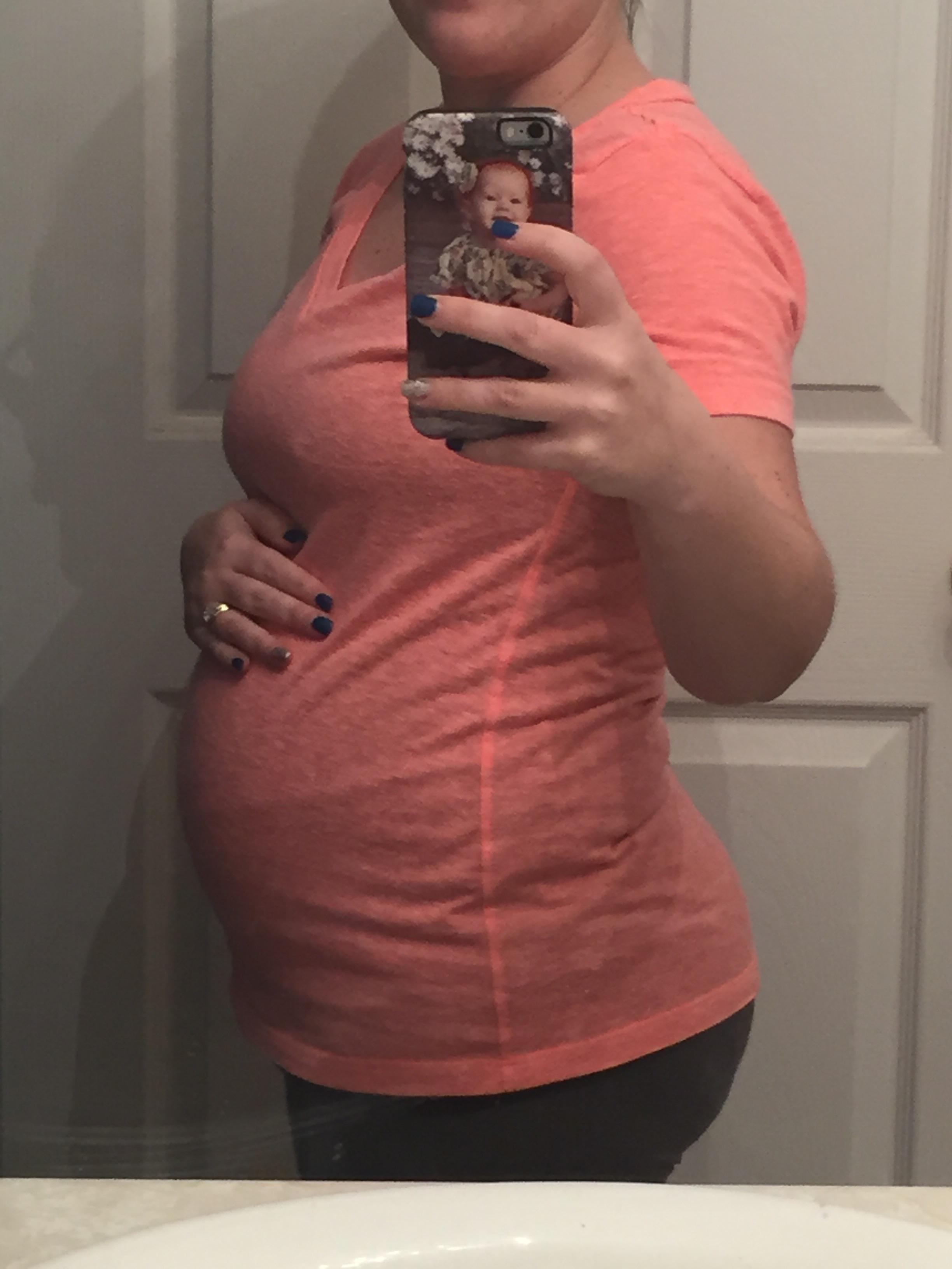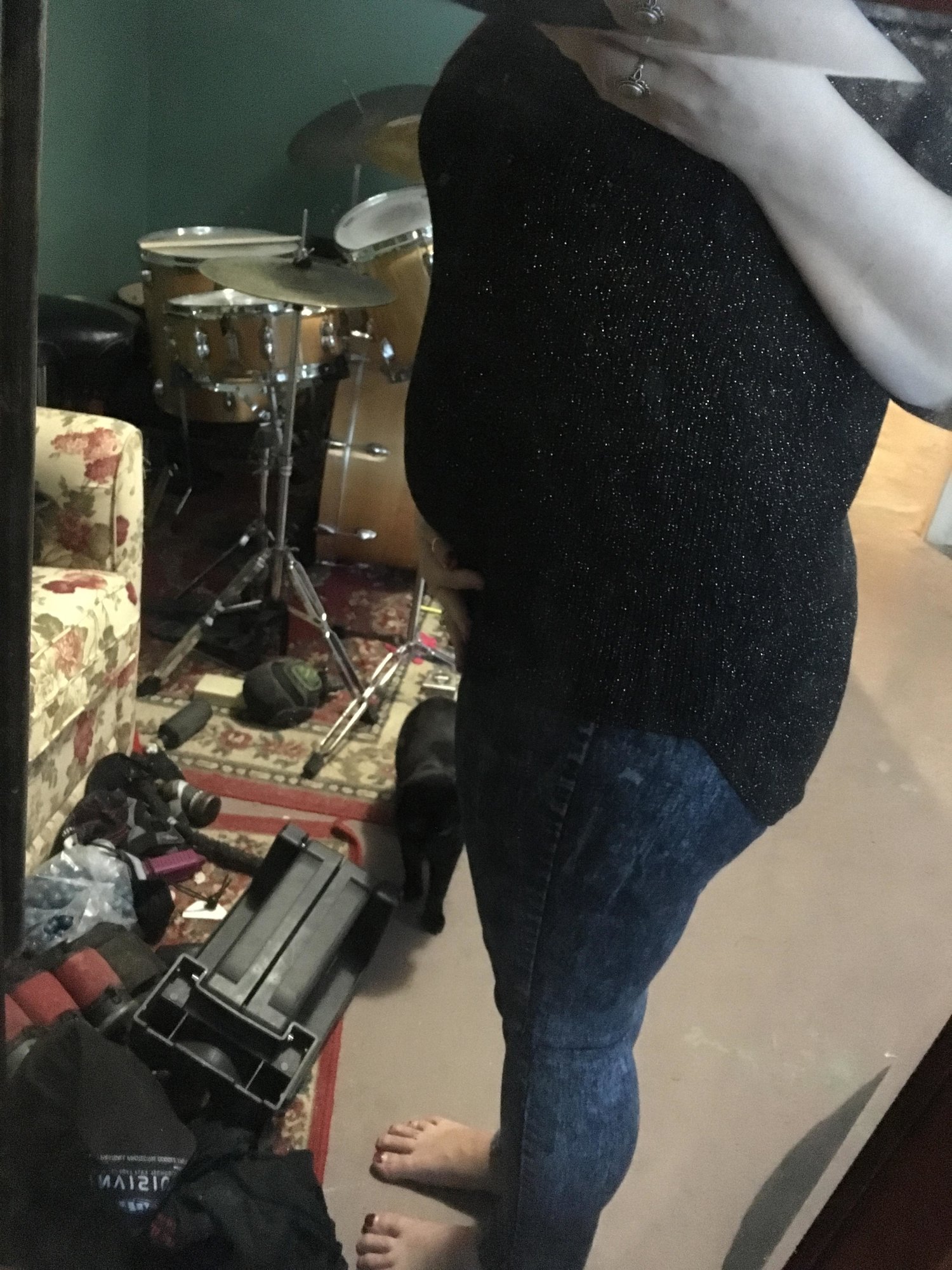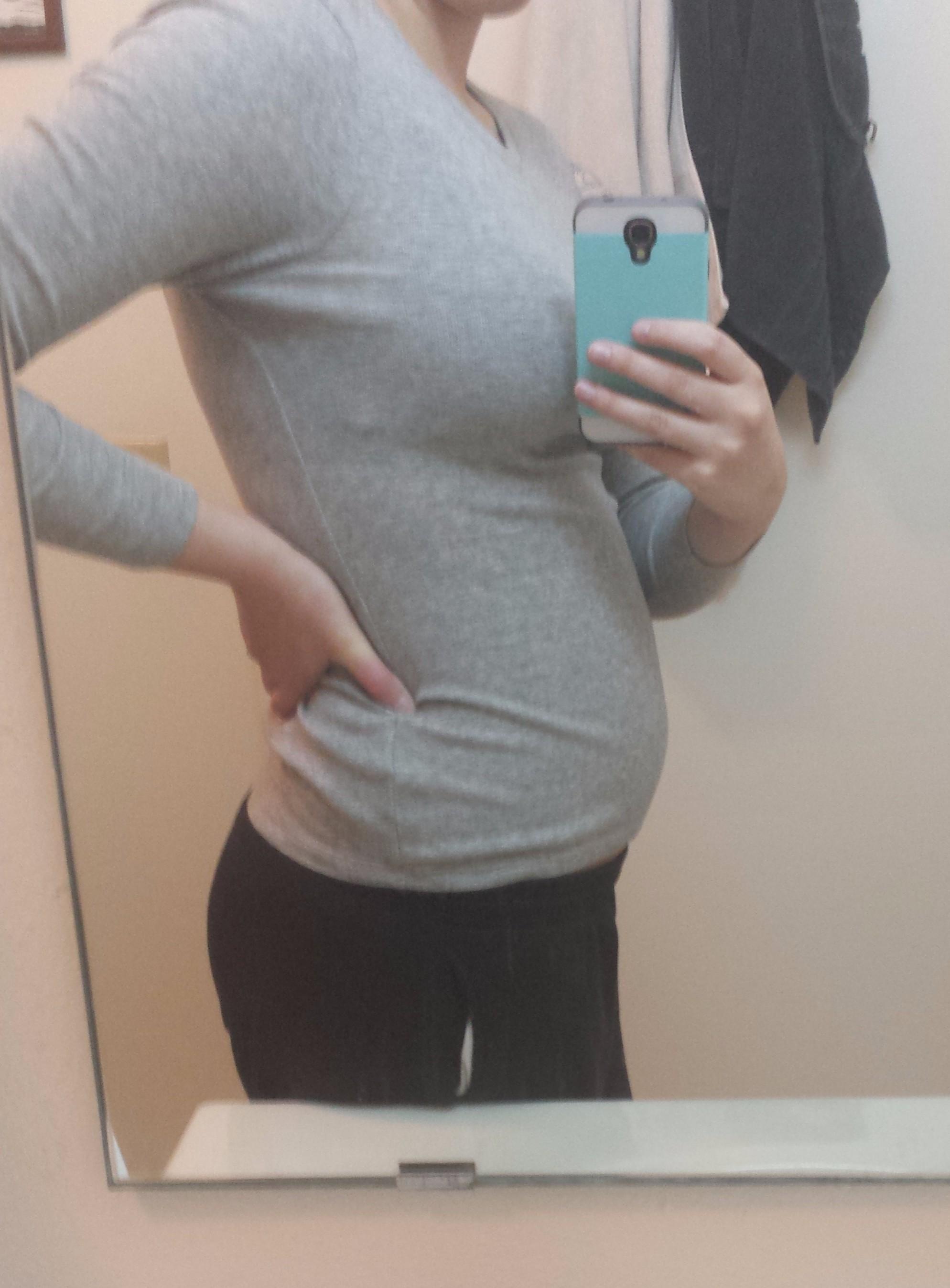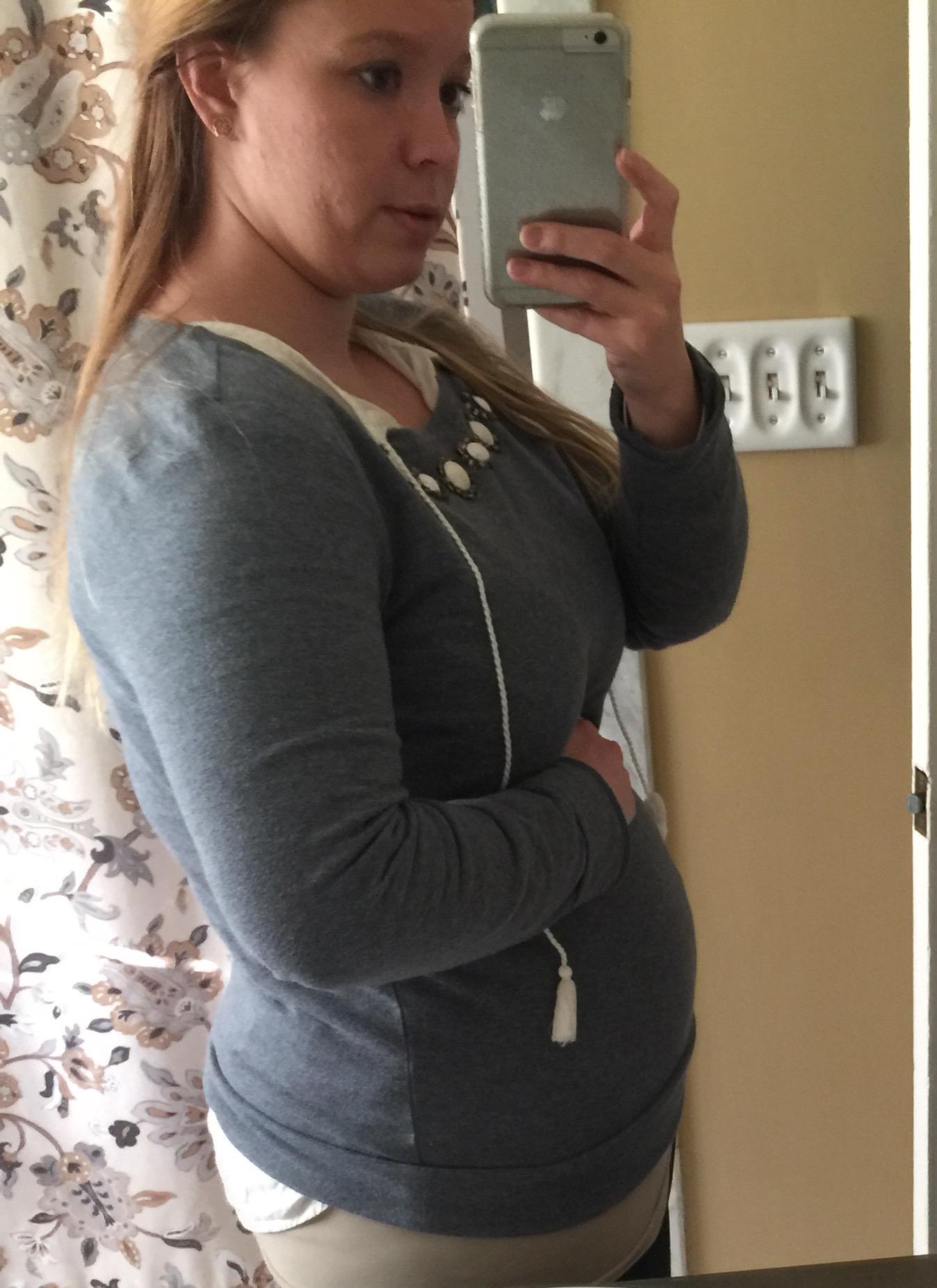 Another first-time-poster. 17+1 today with ds #2. I have a short torso and always gain weight in my belly first, so I look extra bulbous!