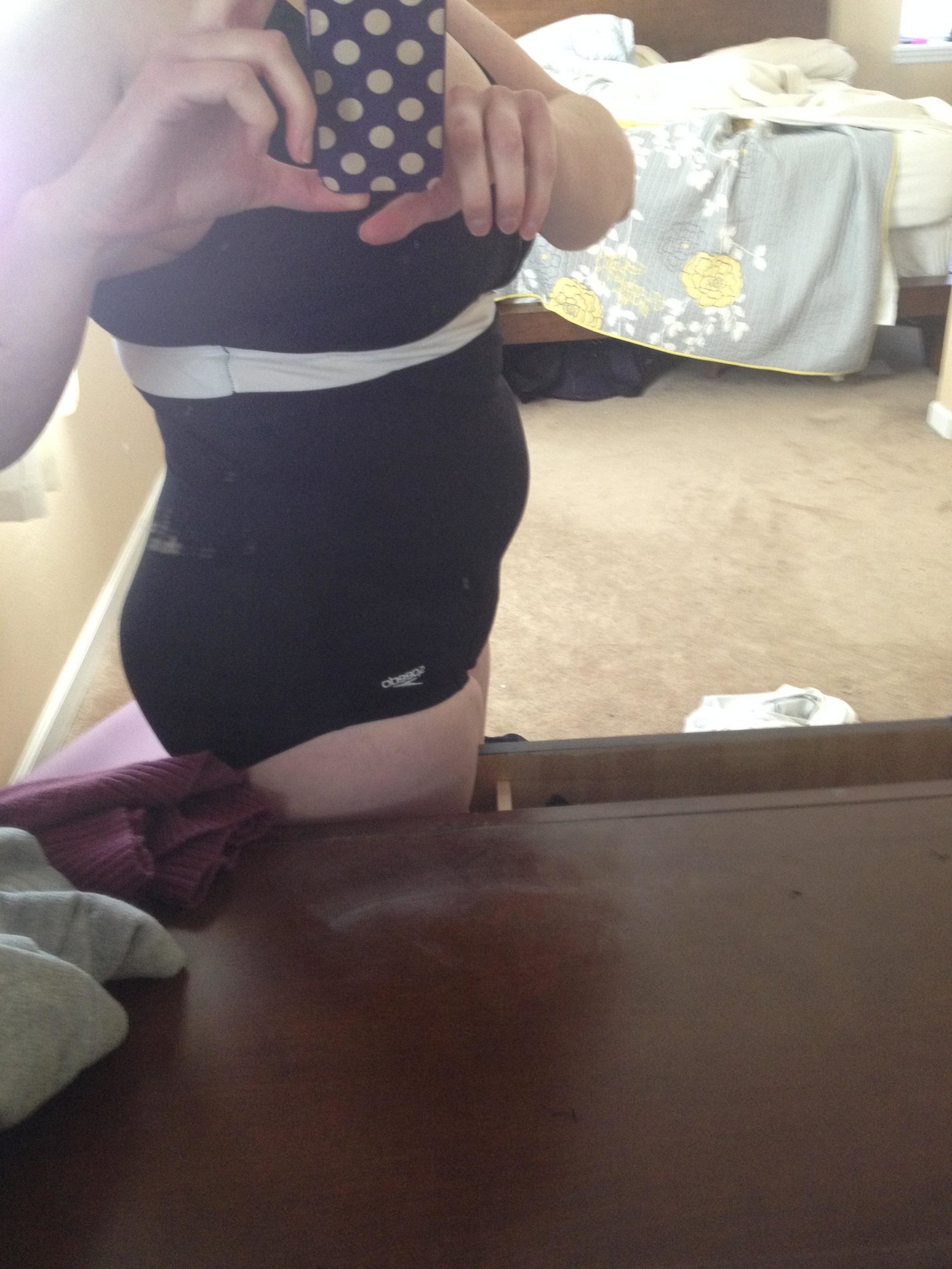 I'm pretty sure this is all fat since baby is apparently about the size of a lemon... haha. And I promise I do OWN a bra. Hard to make myself wear one at home.... anyway.... 14 weeks tomorrow. Baby number 4.