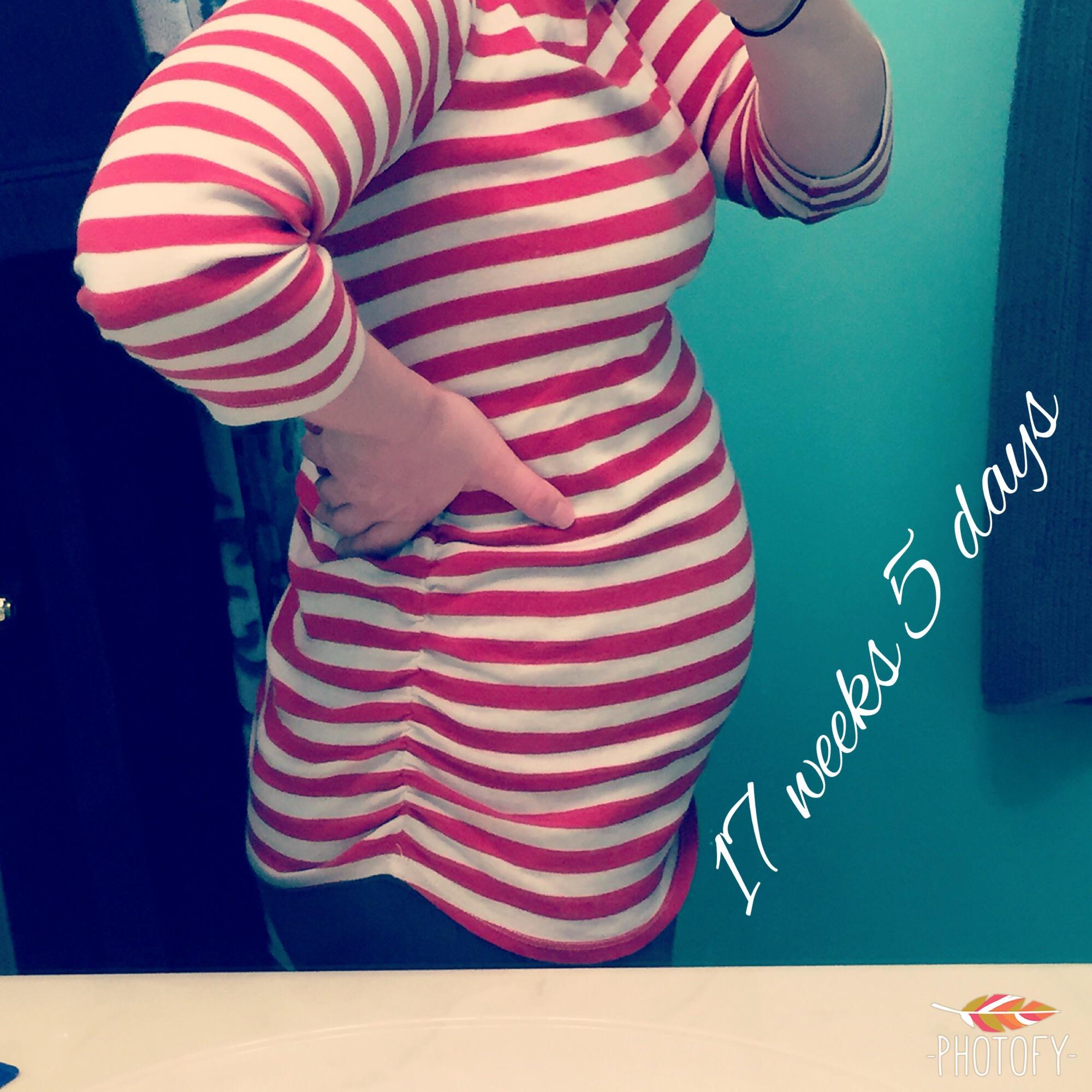 17+2 today but this picture was taken at 17 even. I just finished a prenatal massage and am a greasy mess so I'm not gonna burden you guys with a picture of that First bebe!