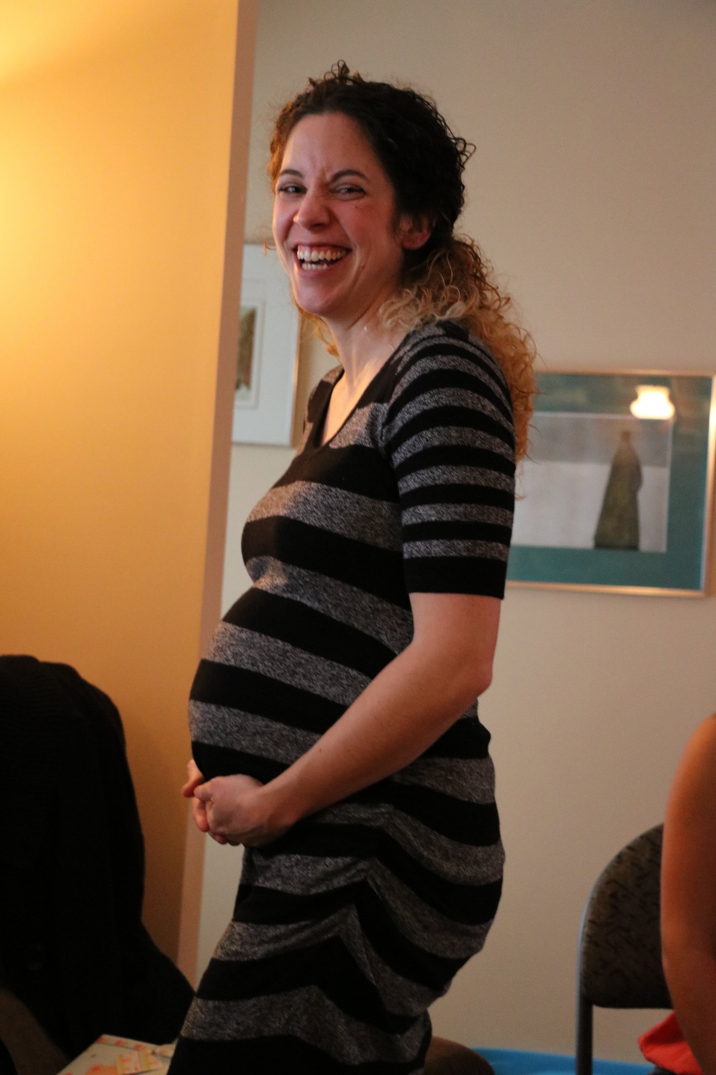 I'm too lazy to take a new, so this is one of my baby shower at 31 weeks. I did it early, because I had to travel from Jersey City to Montreal for it and I won't want to do the drive when I get too big. Sorry for the crazy looking laugh