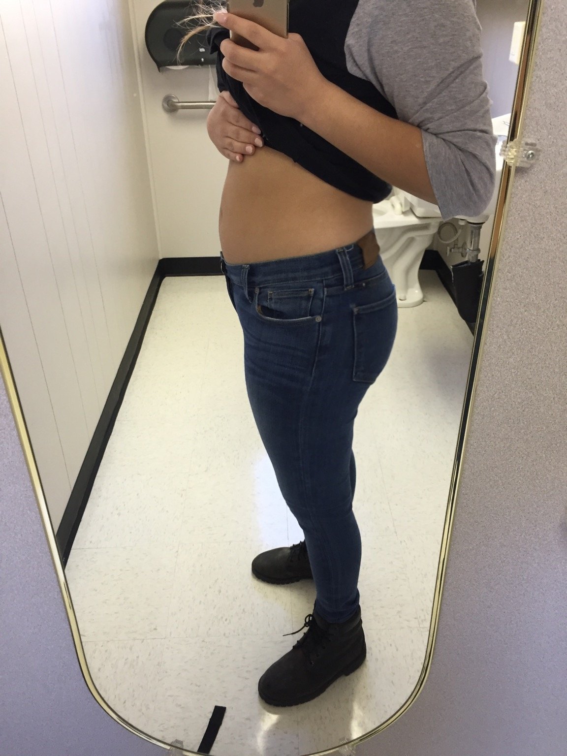 Ftm 16 weeks, This is me (trying) to suck it in! Still shoving myself into my favorite jeans though!