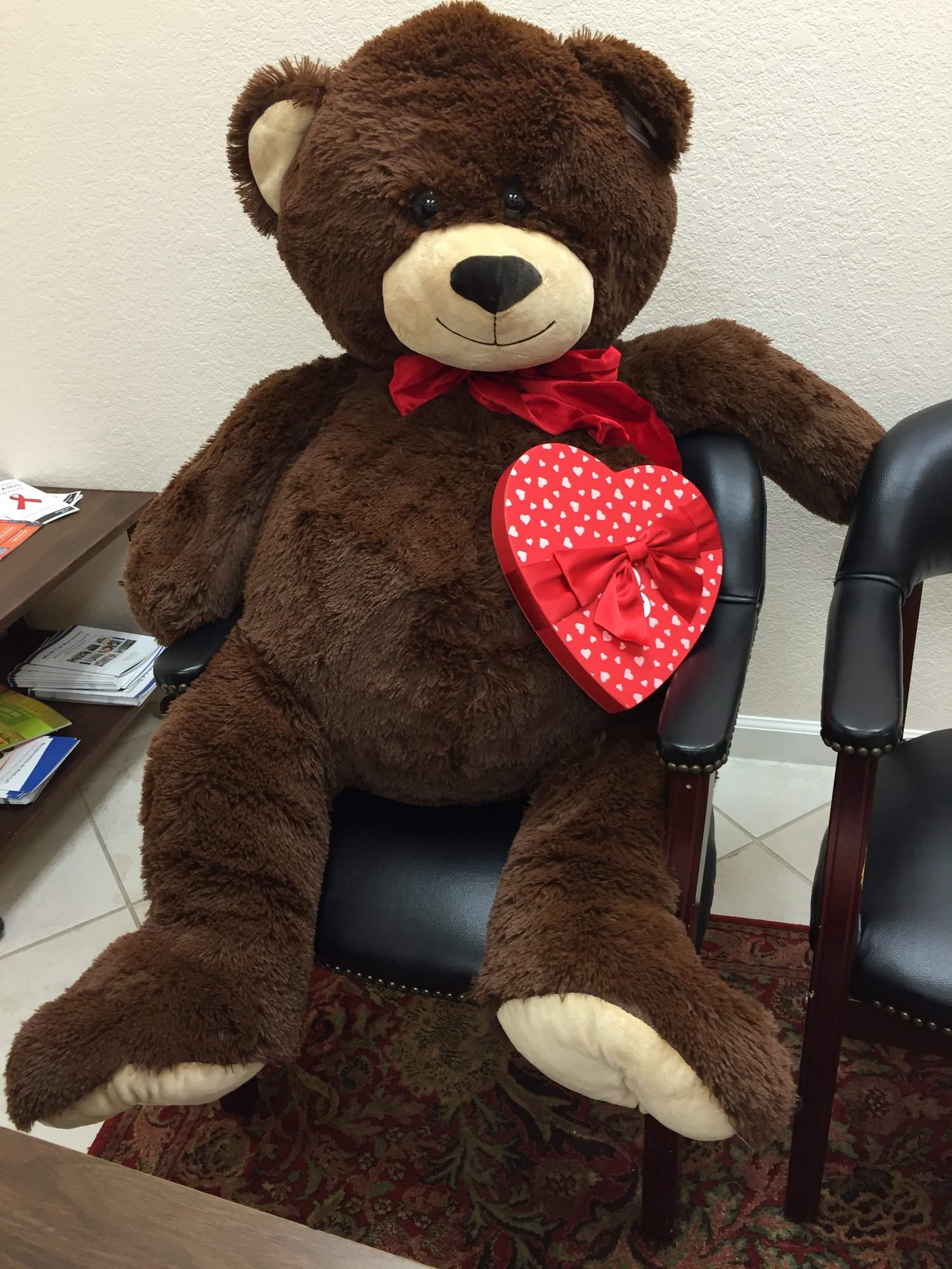 My husband and I said no gifts for Valentine's Day this year but this gets sent to the office today with a card saying, "flowers die, bears don't". We are kids at heart too.