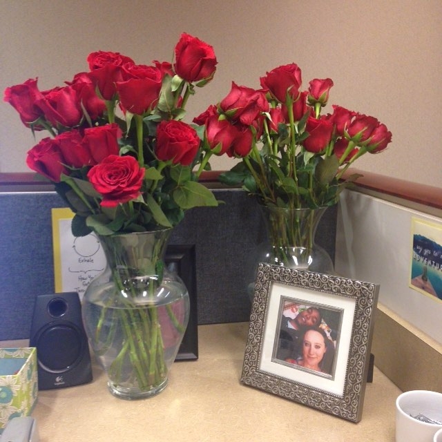 I seriously love this man! He sent me 100 roses to work today! I could only fit half of them in the vases that we keep at work! They're so beautiful. The note said "I wanted to make sure there were enough for you and our bump. I love you." I started crying! He's too sweet!