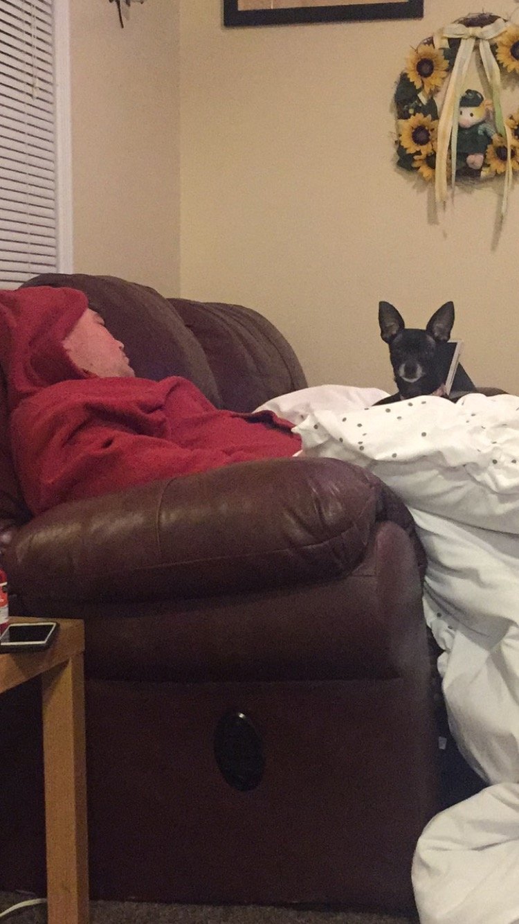 I post a lot of Hugo butts photos so figured it was time for the lady of the house to get some camera time. Clarabelle is happy DH put her up on the bed, I'm not happy because she's the shedding queen.