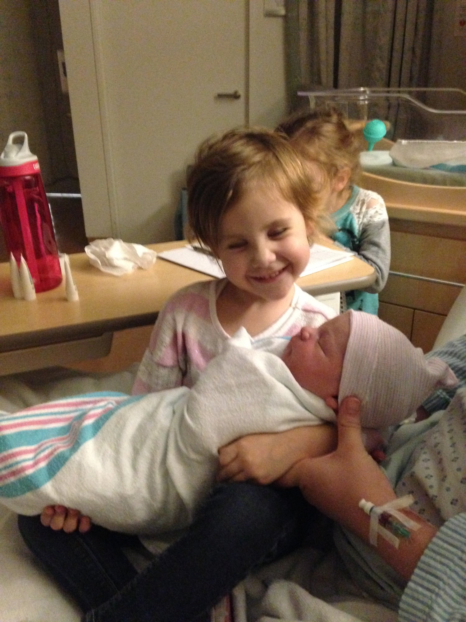 I was scheduled for an induction and woke up eager to get things started naturally in hopes to avoid meds. So hubby and I DTD. Immediately after, I started contracting (around 7am). I did some things around the house and noticed the contractions were picking up. They quickly got to 3-4 minutes apart and I headed to the hospital. Since I was scheduled for an induction later that day, they already had a bed made up and ready for me. After being assessed, they determined that I was 2-3 cm and decided to give me the Foley Bulb to help get things moving. Within a half hour, the bulb fell out (which it does around 4cm). They let me labor for an hour and checked on my progress. I was still 4cm but had almost completely thinned out. I asked for the epidural at this point (and I'm glad I did!). About an hour after the epidural was in place, I felt a small puddle form under me. My water broke. 15 minutes after that, I felt a gush of fluid and had my hubby check to see if it was clear or green. He said it was quite bloody. I started to feel a ton of pressure immediately after that and decided I should call the nurse. She checked and told me, "Okay, let's have a baby!". I pushed twice and his head was out. One more small push and Titus was here. From my water breaking to push time was less than 30 minutes. I was very grateful to have the hour before to rest with that epidural. Altogether, it was the best birth experience I've had (3rd one).