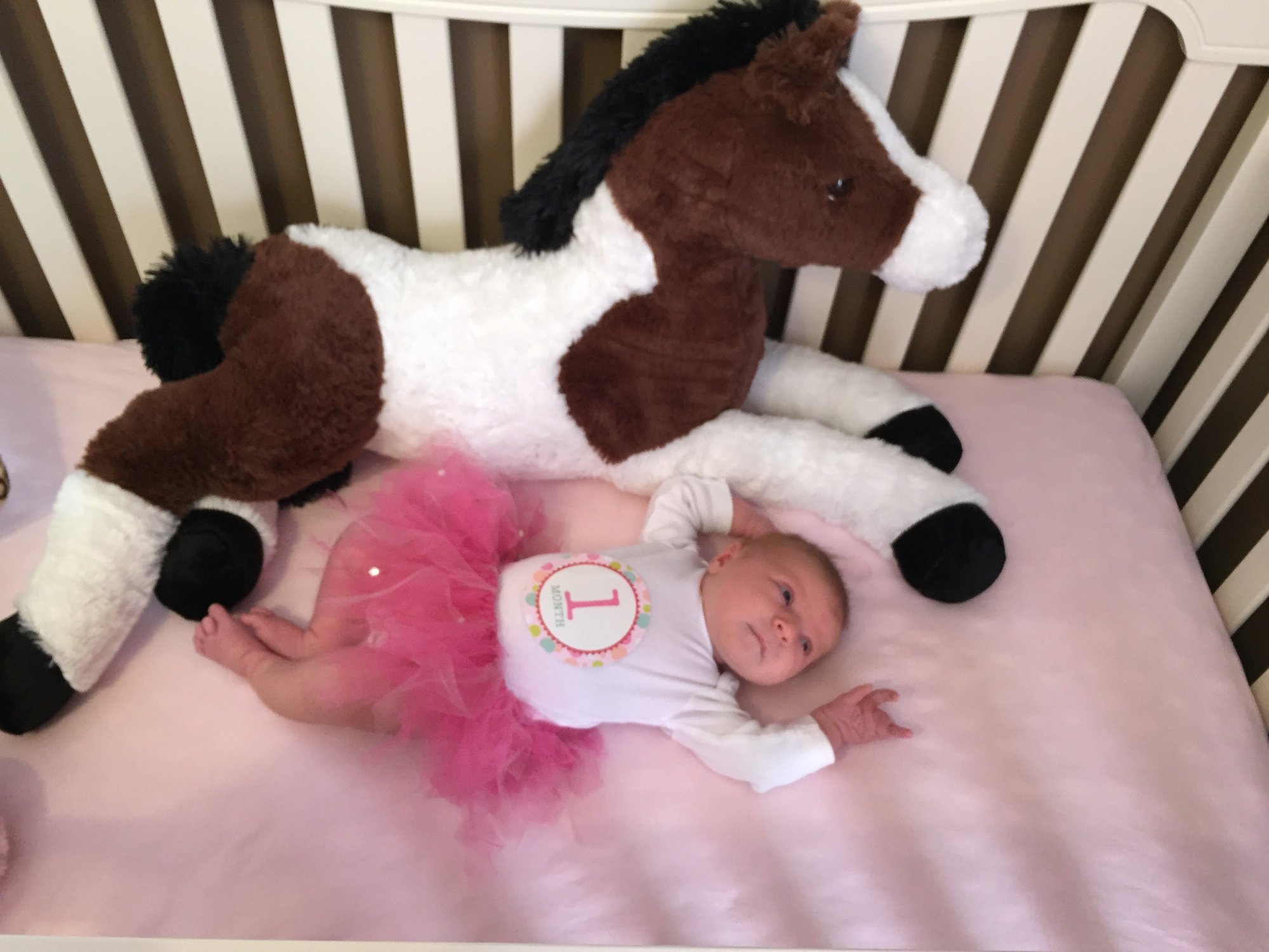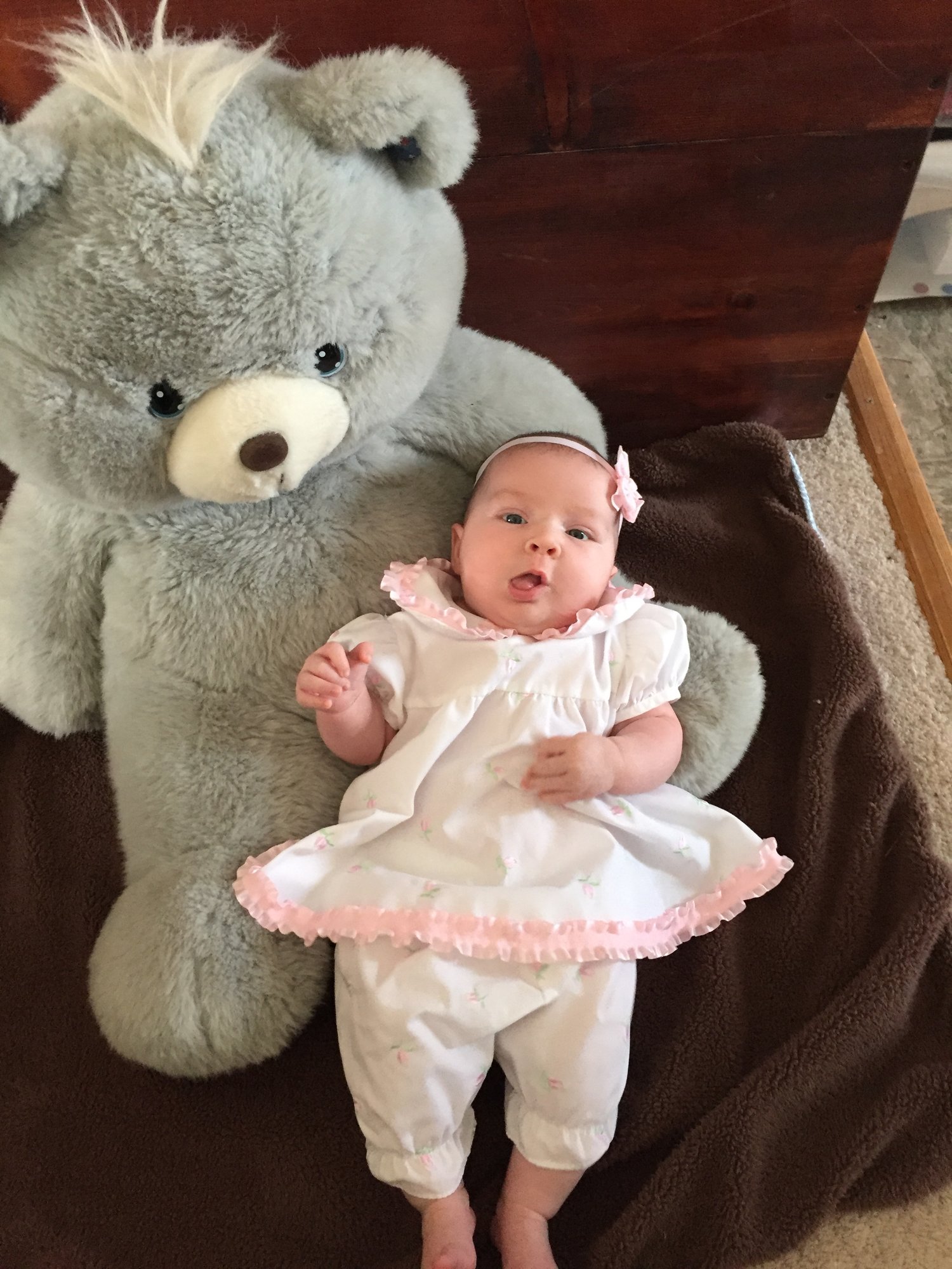 Nothing fancy! However, I like the idea of taking her picture each month with her giant teddy bear to see her progress! She turns 2 months tomorrow-- I will start then!