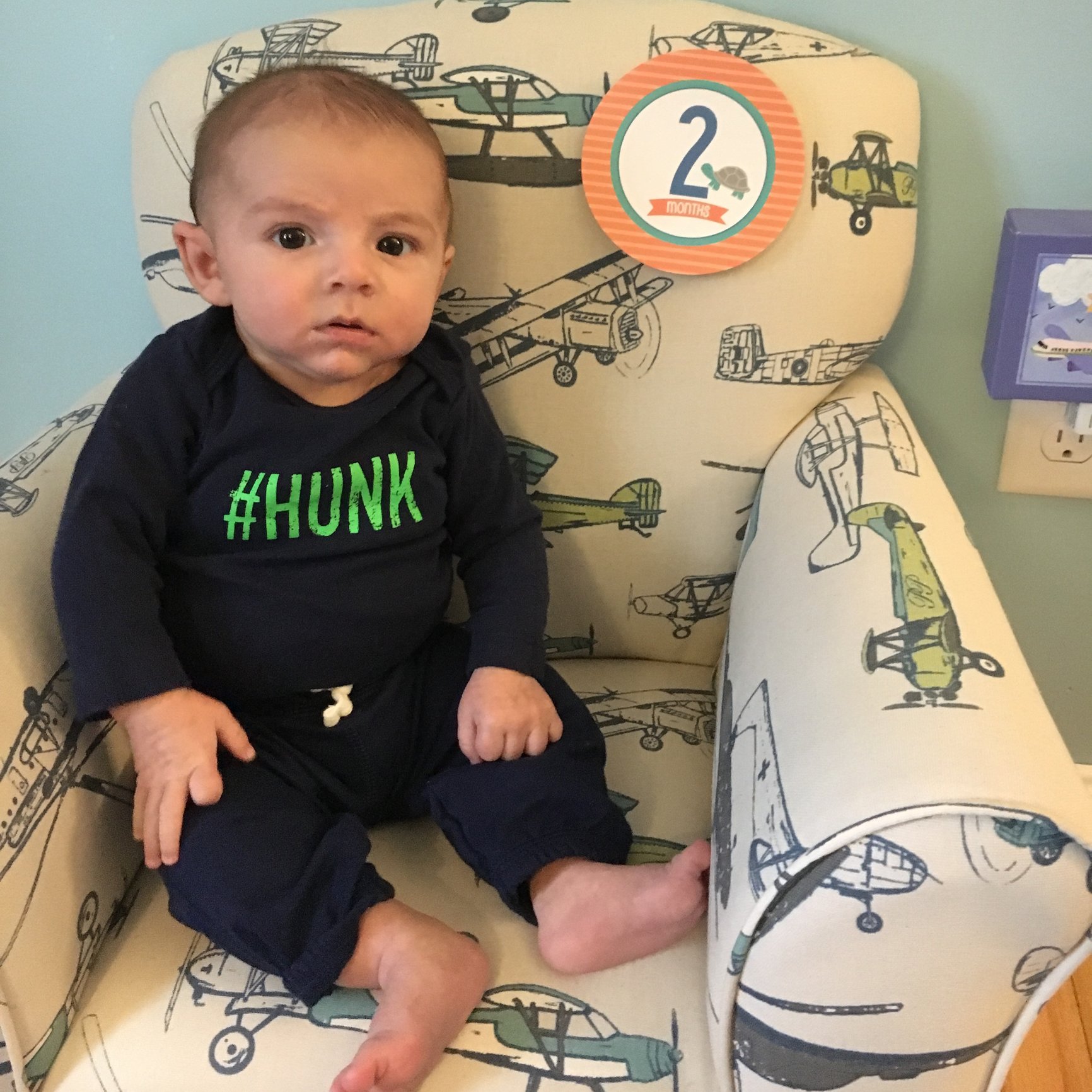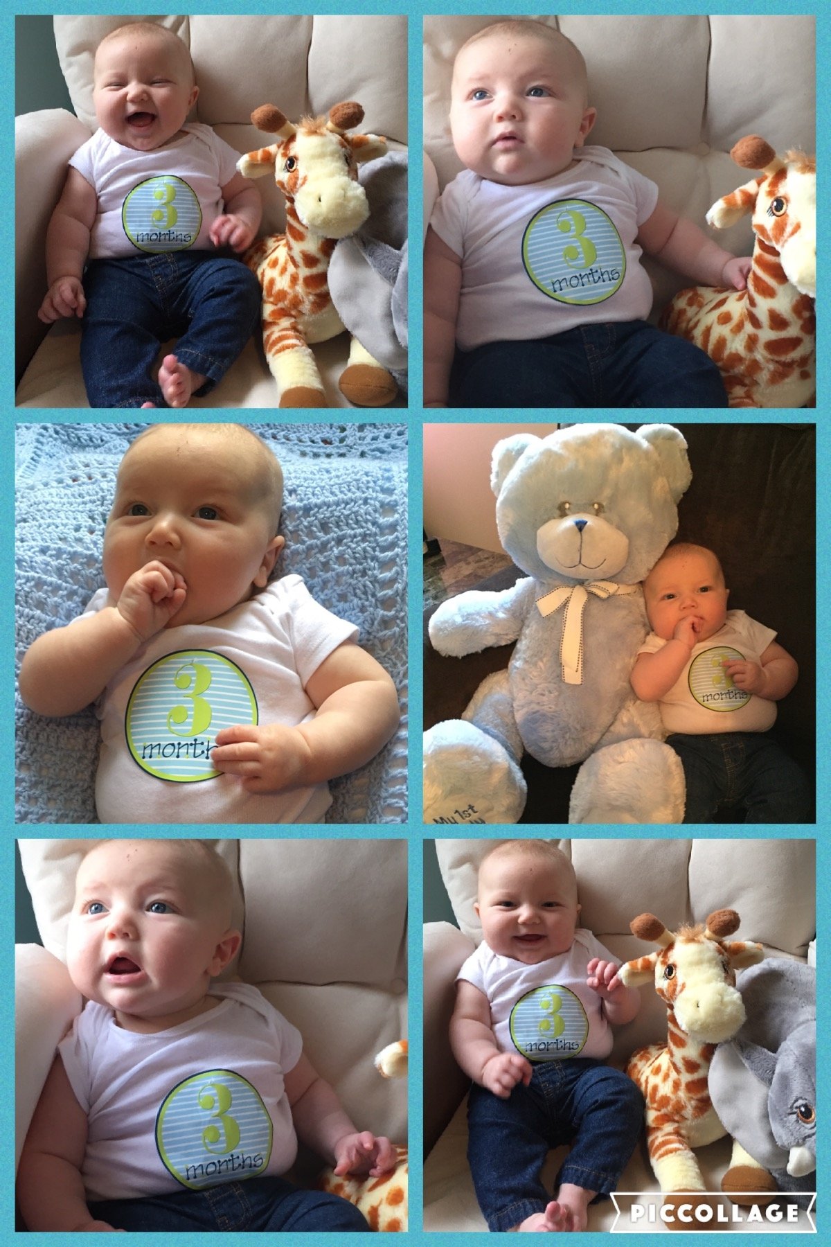 Griffin is 3 months old on Wednesday. He's making so many more noises and coo'ing sounds these days. He loves hearing Mama and Dada's voices and is double his birth weight now, finally! He's just over 10lbs.