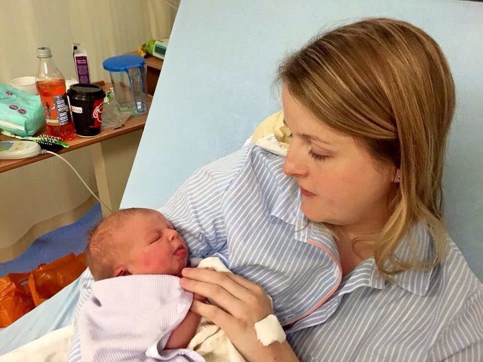 At the end they had to give me an episiotomy to get the head out and baby came out with her arm up by her head, so I ended up with a third degree tear - ended up in surgery with a spinal block, but baby and daddy got to come with me and I got skin to skin and first feed whilst being stitched up!