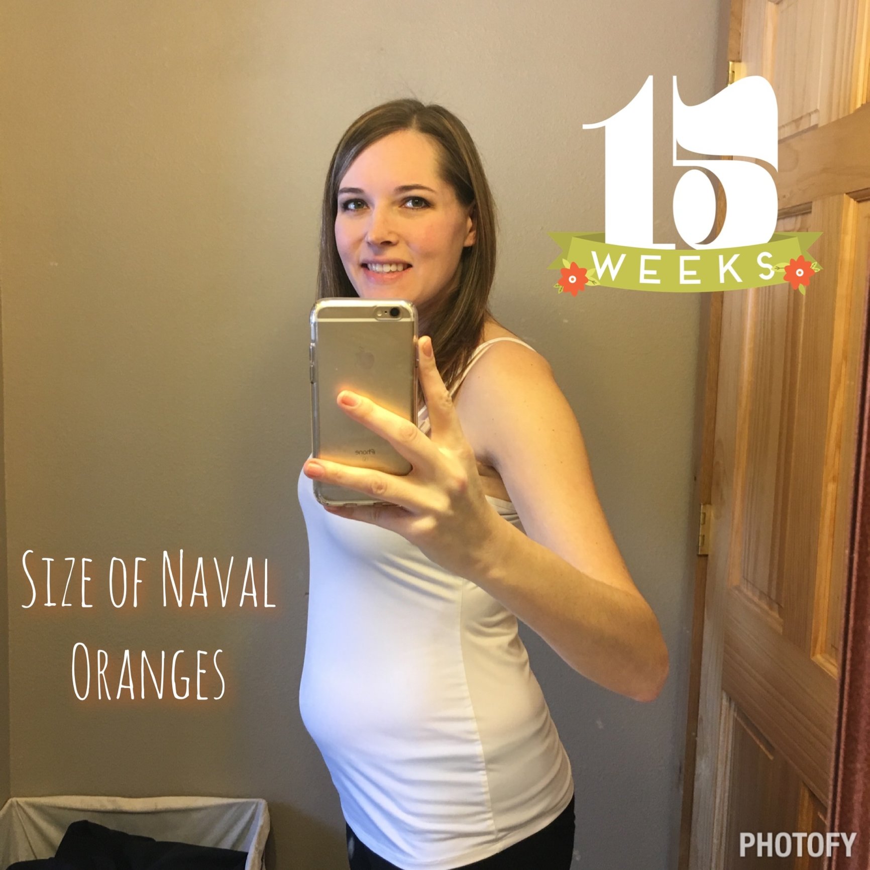 15 weeks tomorrow. Decided to take it today since I actually have makeup on. FTM with Babies 1&2! Had an appt yesterday and my Ob said my uterus was almost to my belly button, figured it's not all fat now!