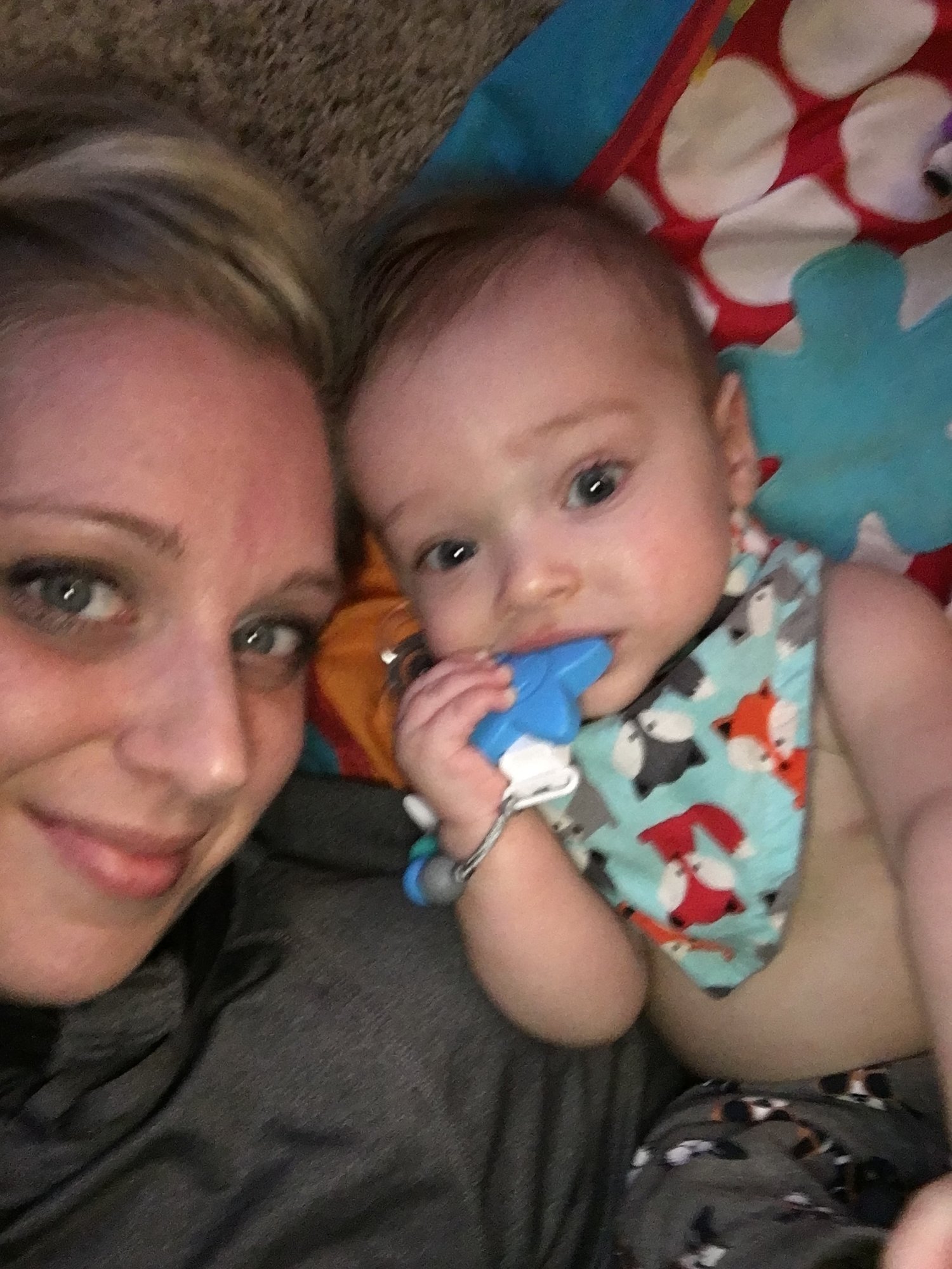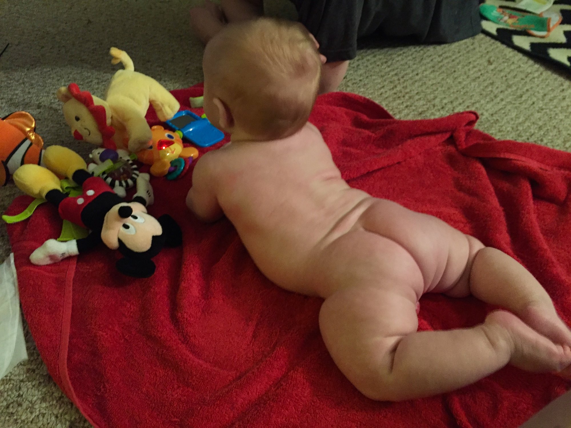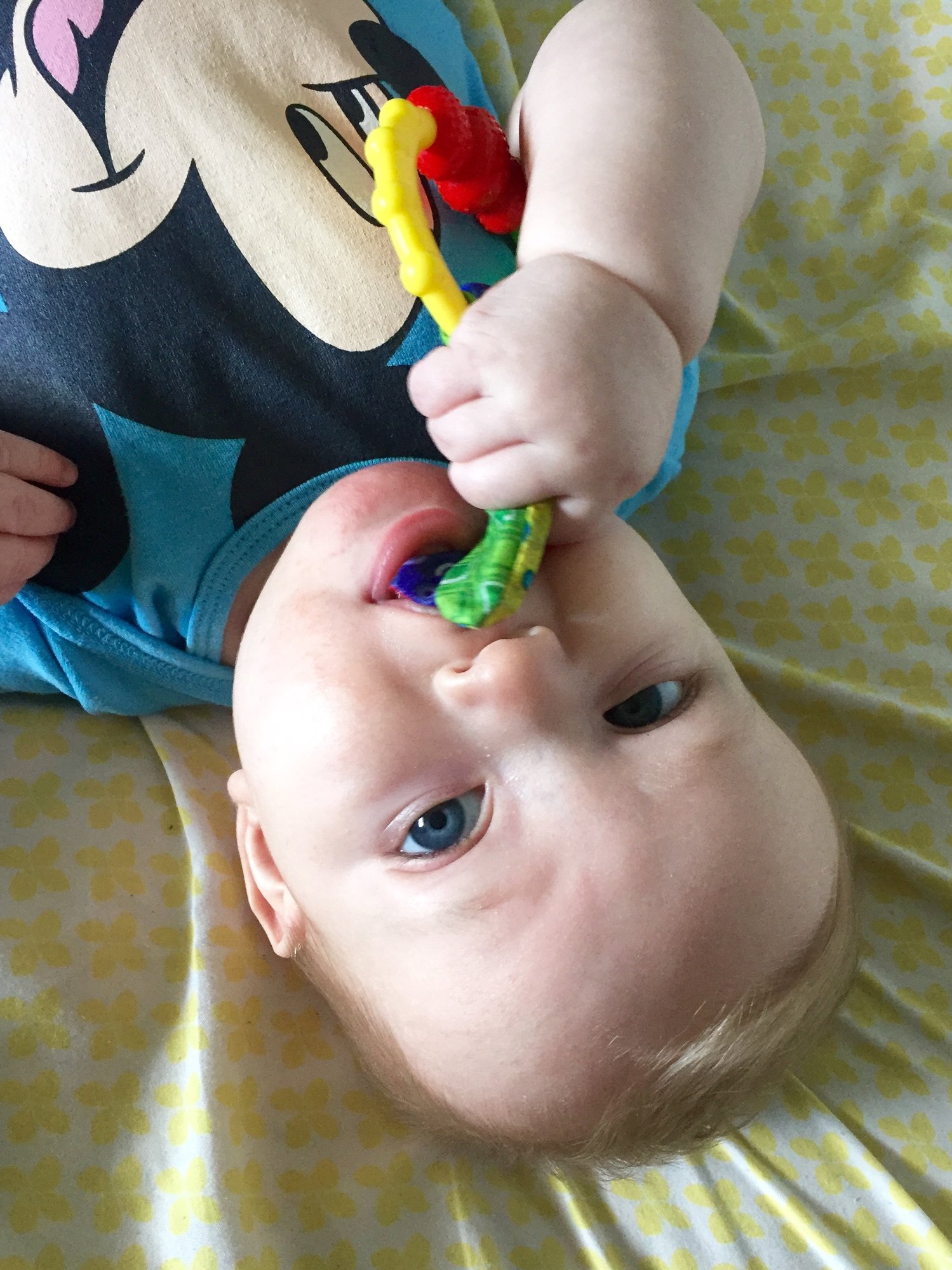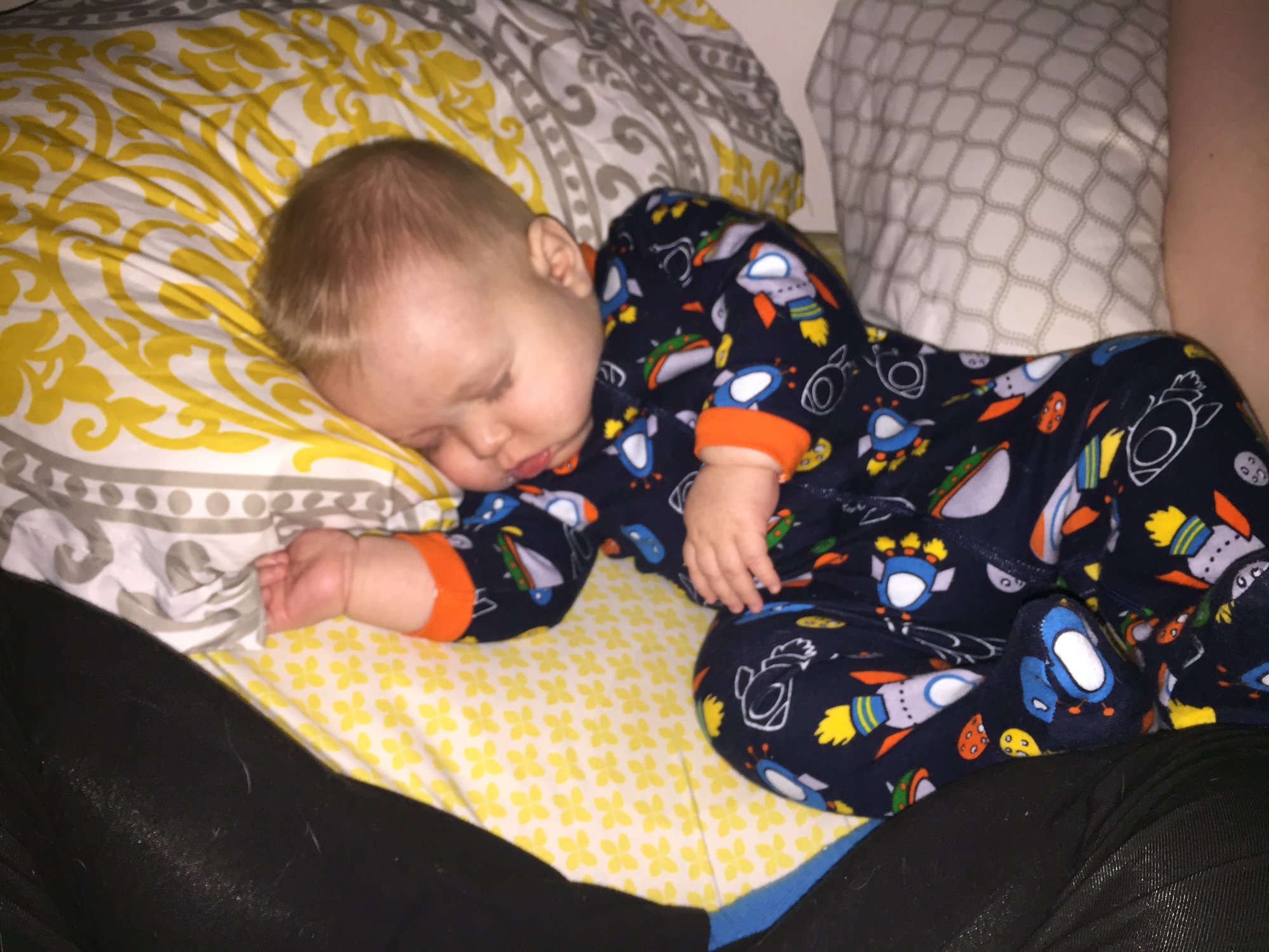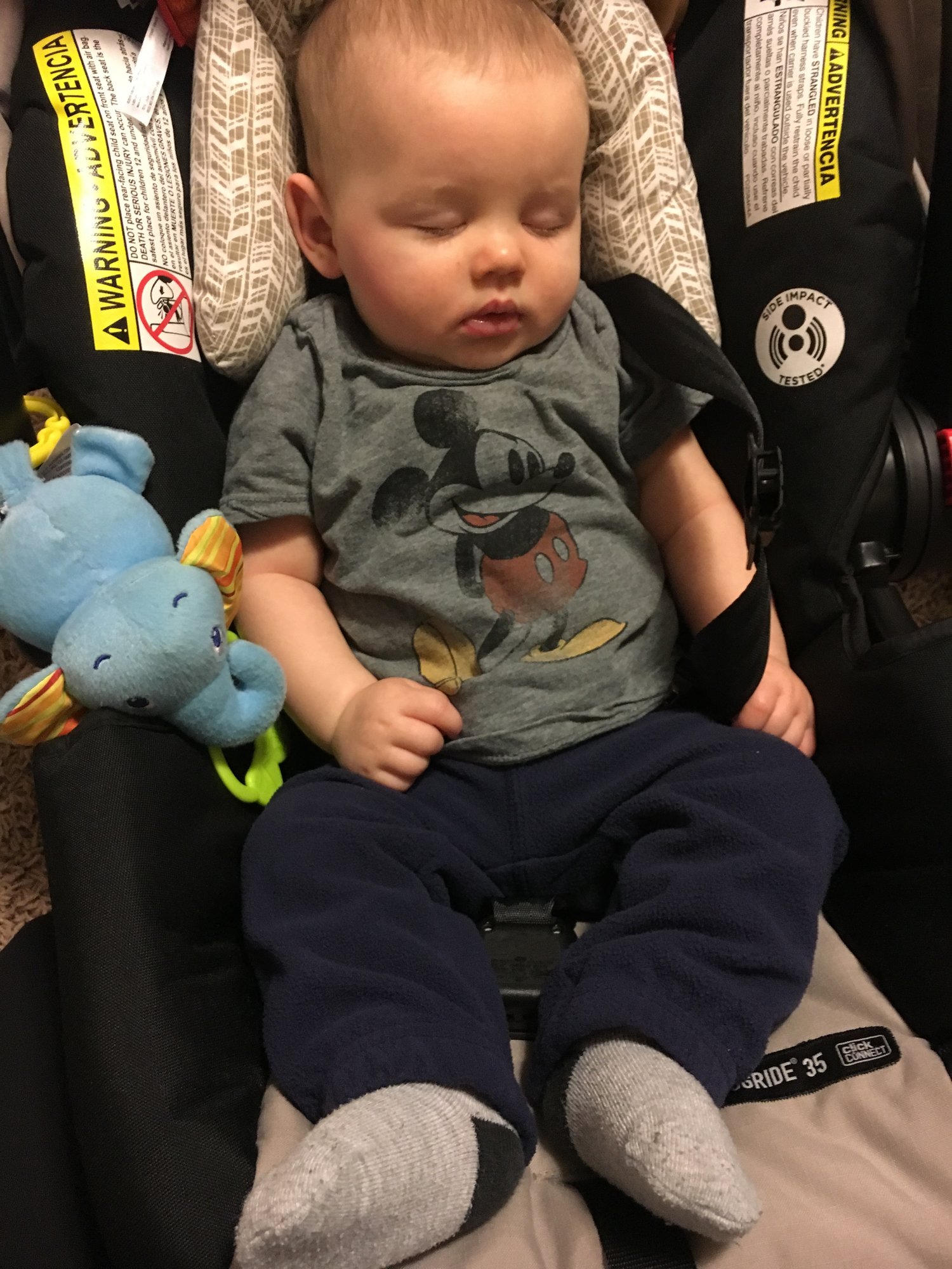 Mickey Mouse shirt... He couldn't trouble himself to open his eyes and look interested in Mom wanting to take his picture.