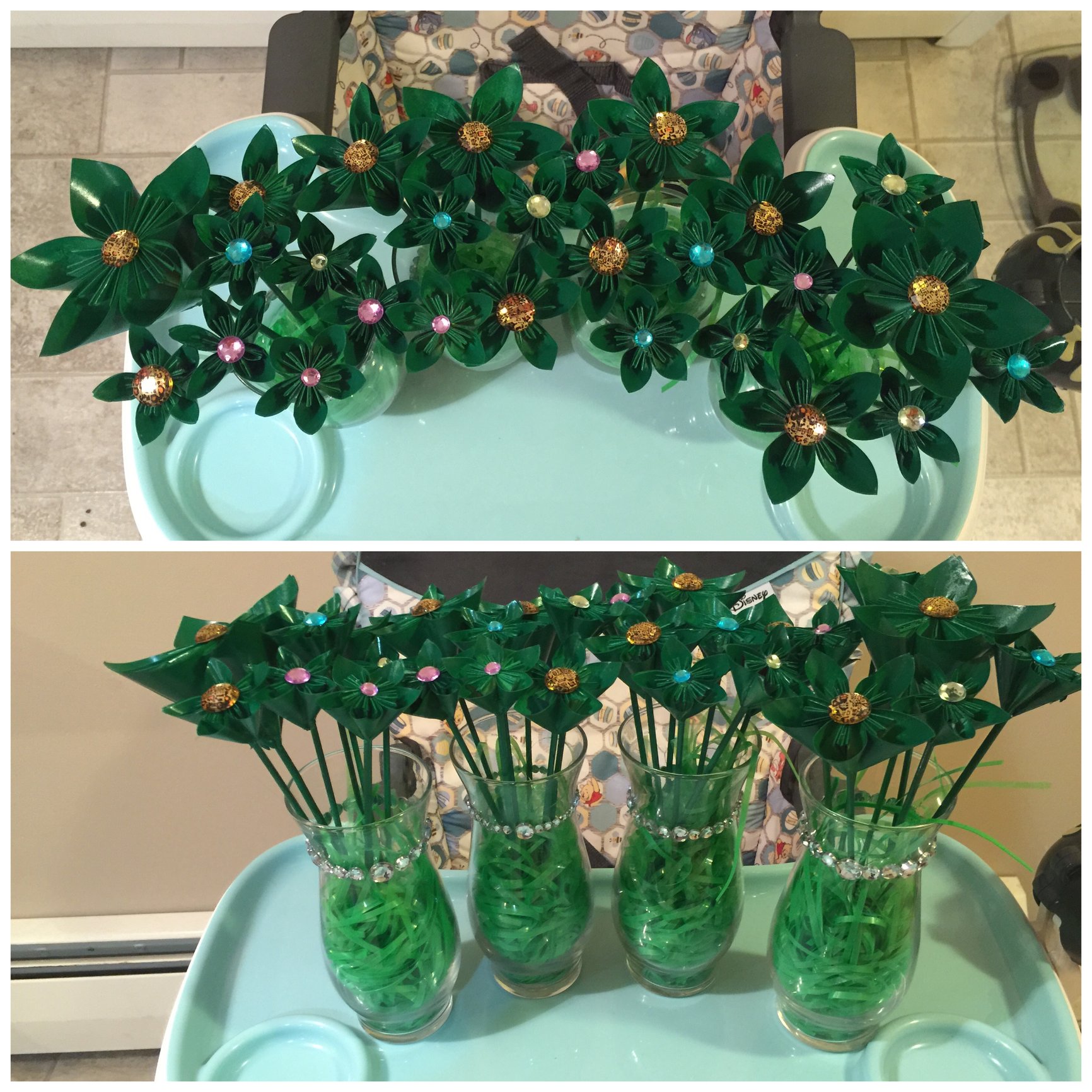 I've been trying to practice making flowers for our wedding so I made flower presents for St Pattys day for the kids teachers. Do you ladies, especially you teachera, think the teachers would like these?? I'm thinking of printing a cute poem or something to hang off of them or something.