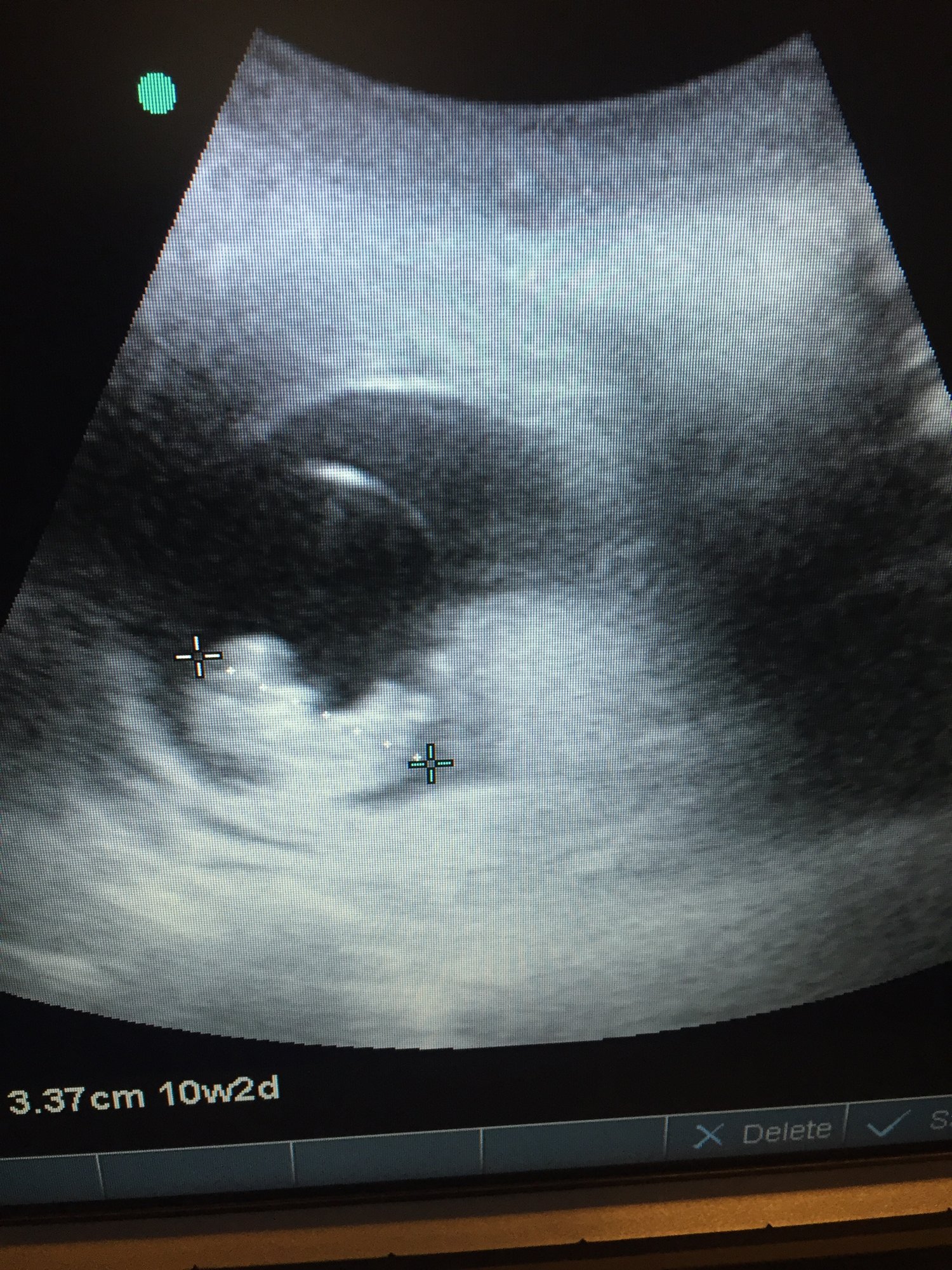 First transabdominal ultrasound. Supposedly 10 weeks but the nurse (not a certified sonographer) said LO measures for 9 weeks and she was unable to find baby B