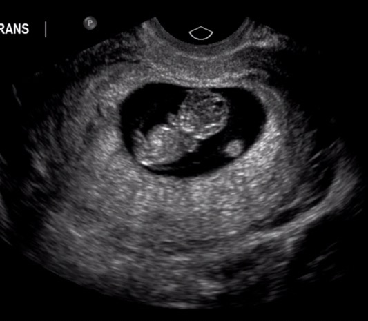 First appt with our midwife. 10w2d. Tracking exactly where we thought we were. When the image came up our three year old said, "it's a baby!"