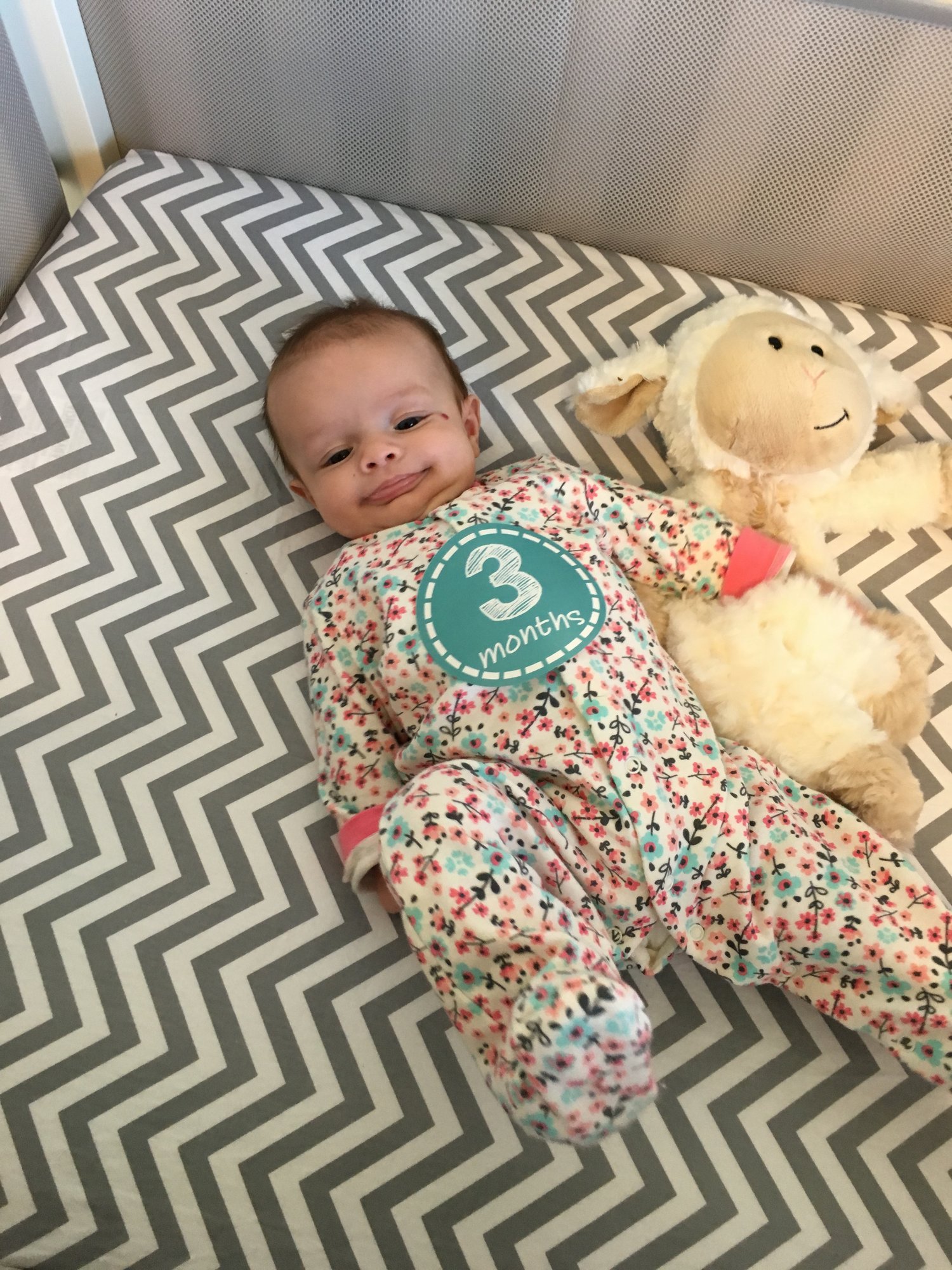 Jordyn is 3 months old today! She loves when we read and sing to her, peekaboo, being rocked, fighting sleep and her glow worm. She hates tummy time and being burped.