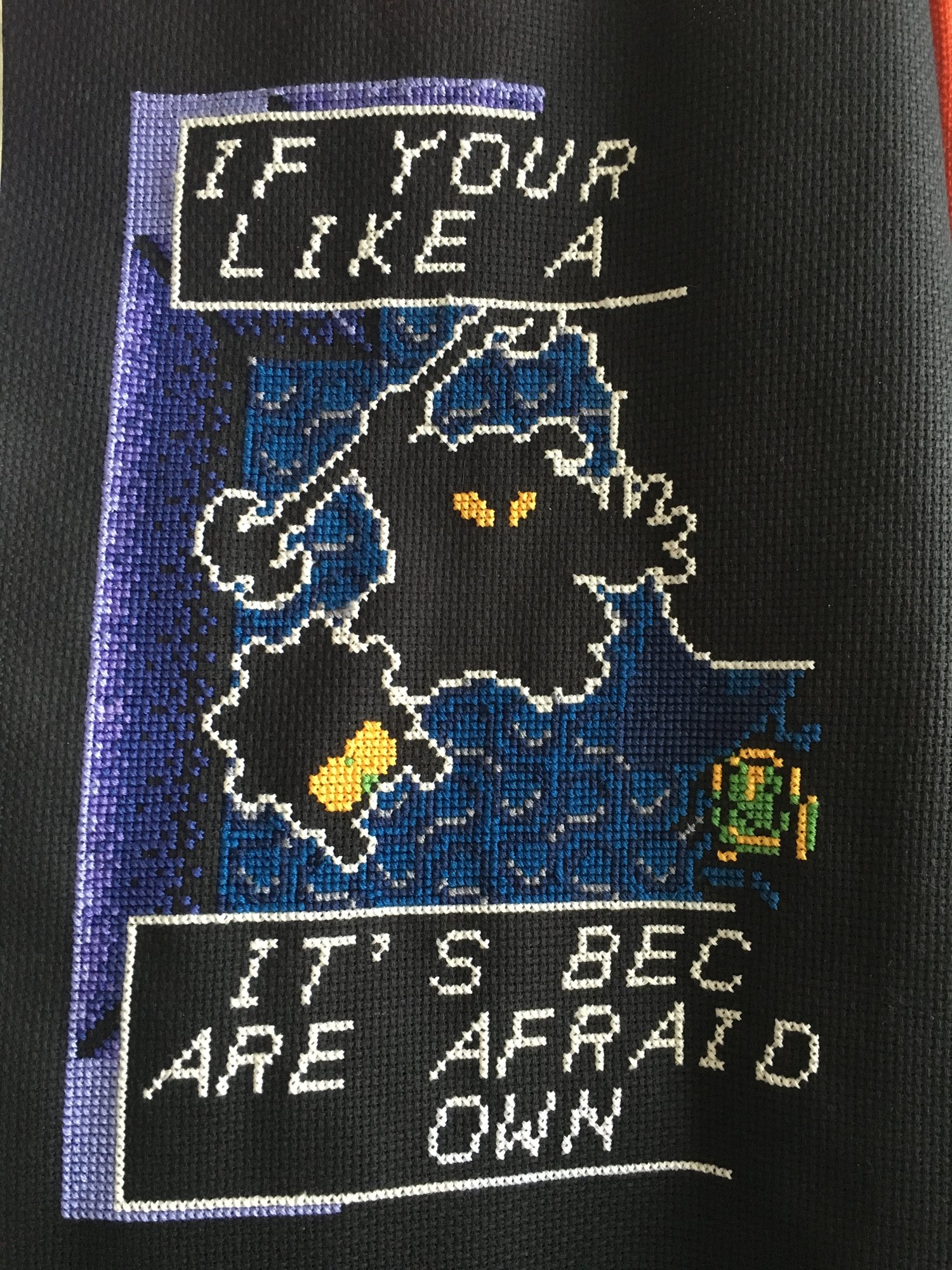7. I'm almost halfway through cross-stitching this awesome Zelda-themed piece:
