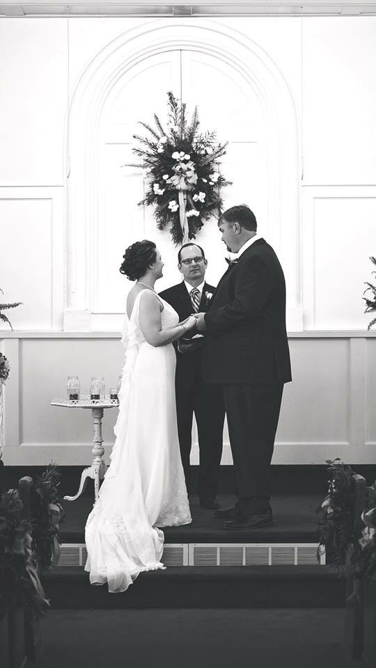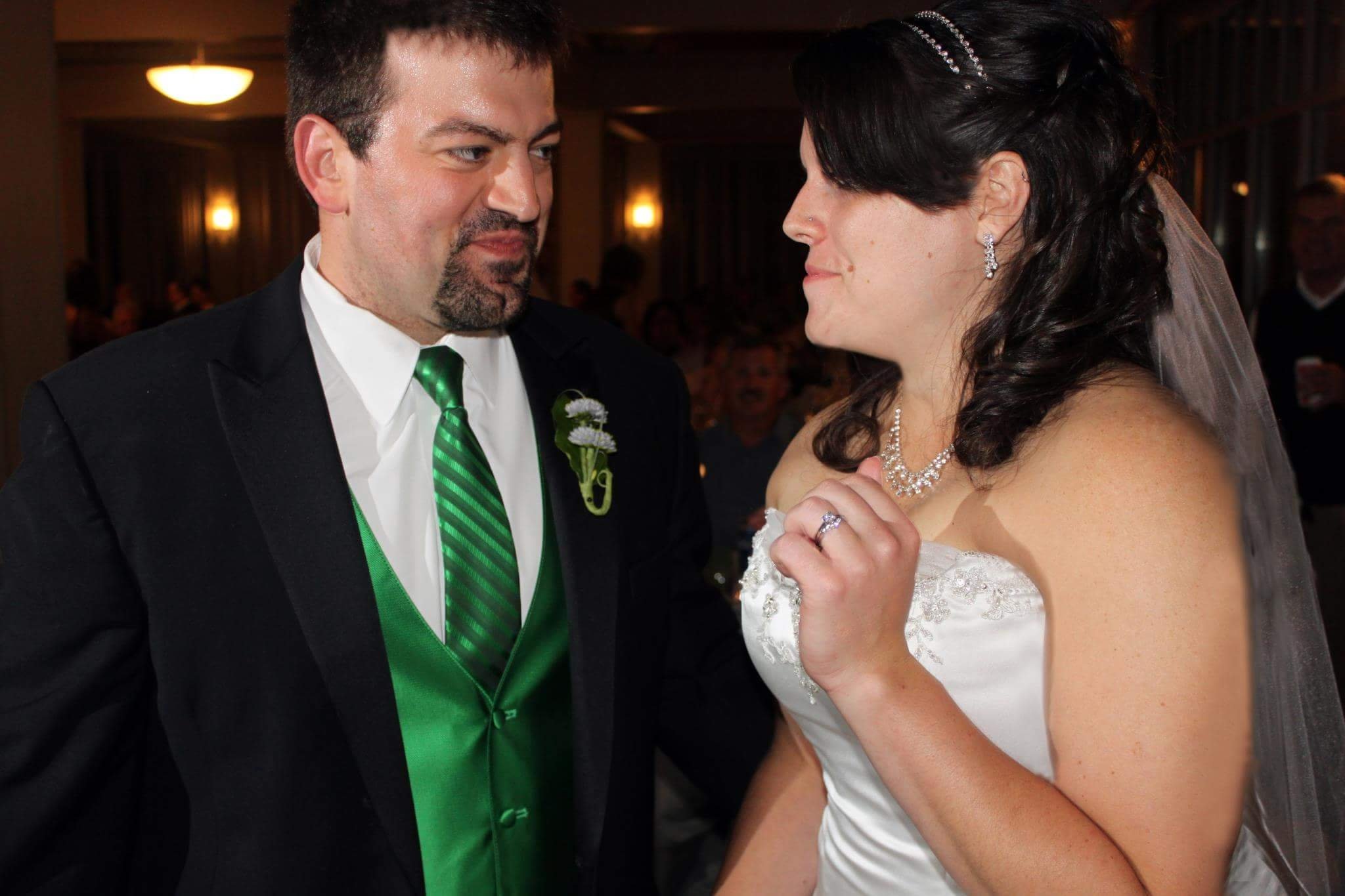 I love this GTKY!! I love see everyone's pictures! My husband and I had planned our wedding for April, but thought it made sense to do a courthouse quickie marriage in October so he could get on my insurance. Only our families knew. This picture was taken the day after while Ghost Hunting (yeah, that's a whole GTKY of it's own!) with my cousins! It was such a great time for us!! Sorry it's so big!!
