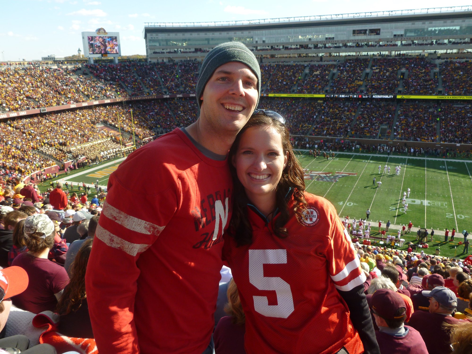 This isn't really a candid (I don't have many of those) but this is when H and I went to the MN-Husker game last year. We try to get to one away Husker game every year just the two of us and it means a lot to me that we have time together and it's something we both love (Husker football!). Plus, I got to meet some cool people on this trip.