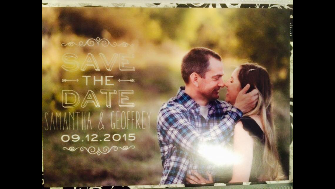 Our save the date!!! At that exact moment, he was telling me how much he hated me because he hates pictures. Lol. And he was standing with one foot in the big pile of snow. It was a weird "winter" we had, as it snowed at a lower level than normal.