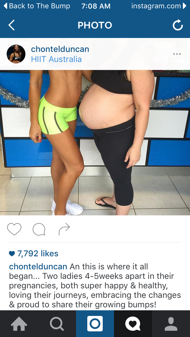 • I'm also a fan of barre and just modifying for ab work, but admittedly I am not the most diligent with my fitness regimen even when I don't have nausea and fatigue as my excuses! That said, I am all about the squats. Perky ass, plus it's supposedly one of the single best exercises to prepare you for labor. Not sure how easy they'll feel when my belly is all baby-tastic (because yeah, I will NOT look like that snapchat chick... ;) ) but squats are my jam, and I love them, and I'm so glad that they are preggo-friendly. :)