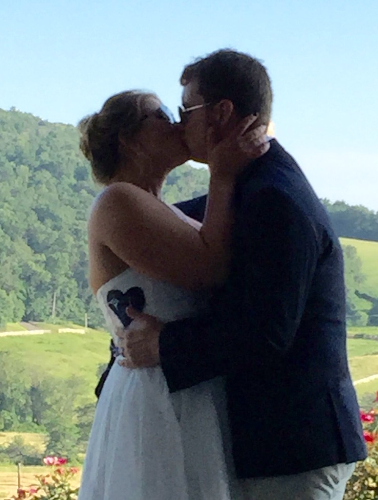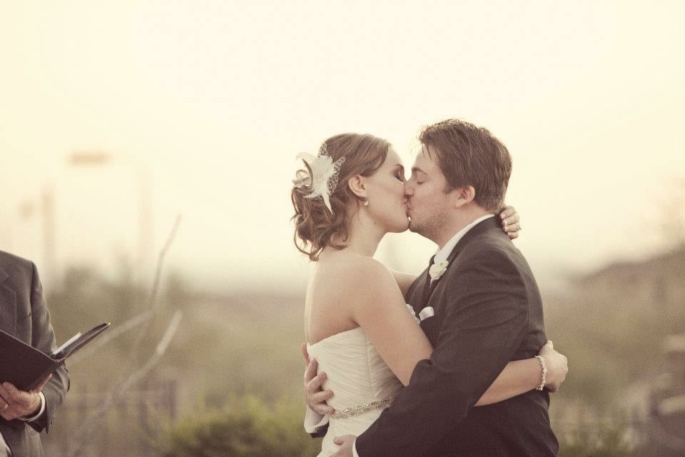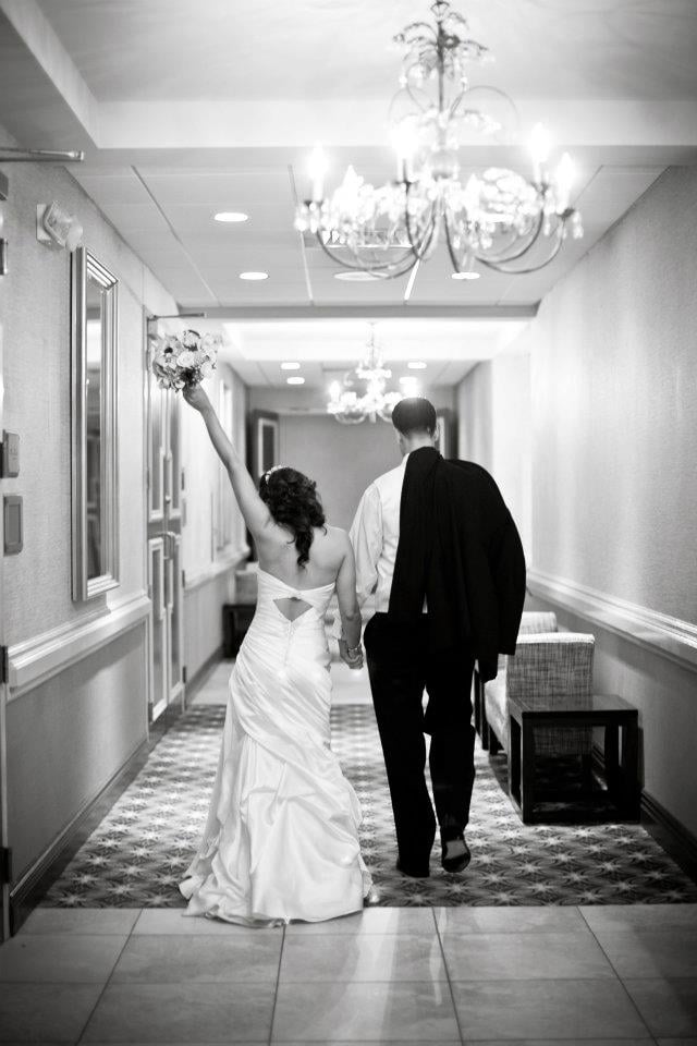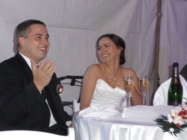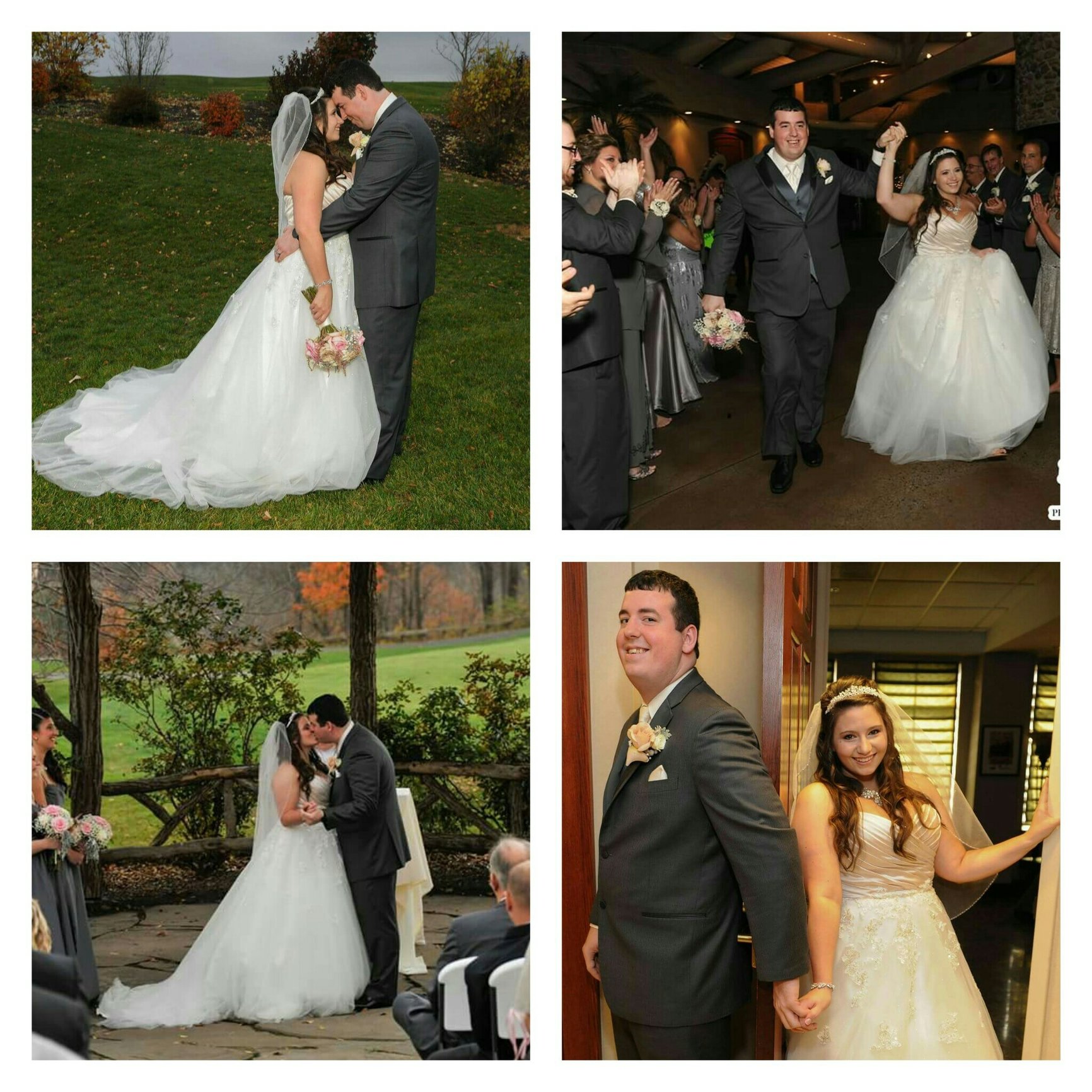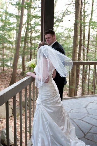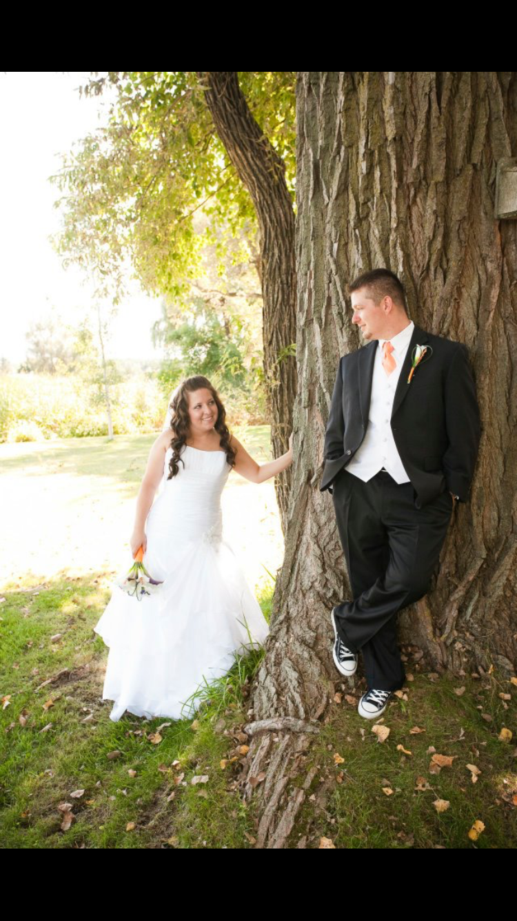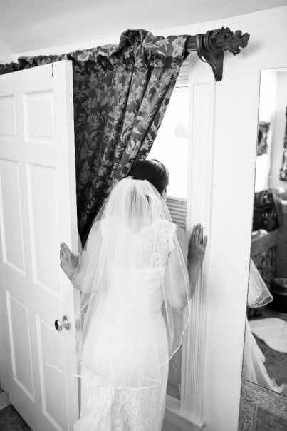 This is our favorite photo from our wedding and we have to blown up and framed. My husband had been off socializing and I had my first moment by myself and started crying with happiness. Someone saw me crying and ran and told him. He rushed over to see what was wrong and all I could say was "I am just so happy!!" as I sobbed. I didn't even know the photographer captured it until we got the photos later. All of my favorite people are in the background and it capture our reception perfectly. It was my favorite moment from the entire wedding.