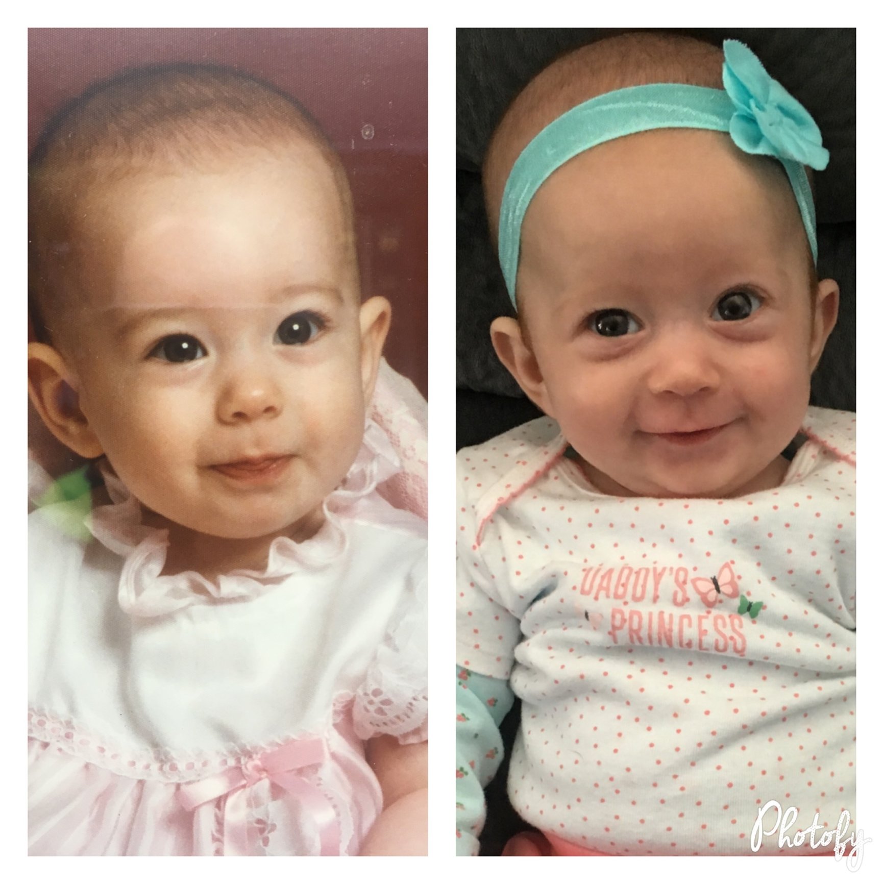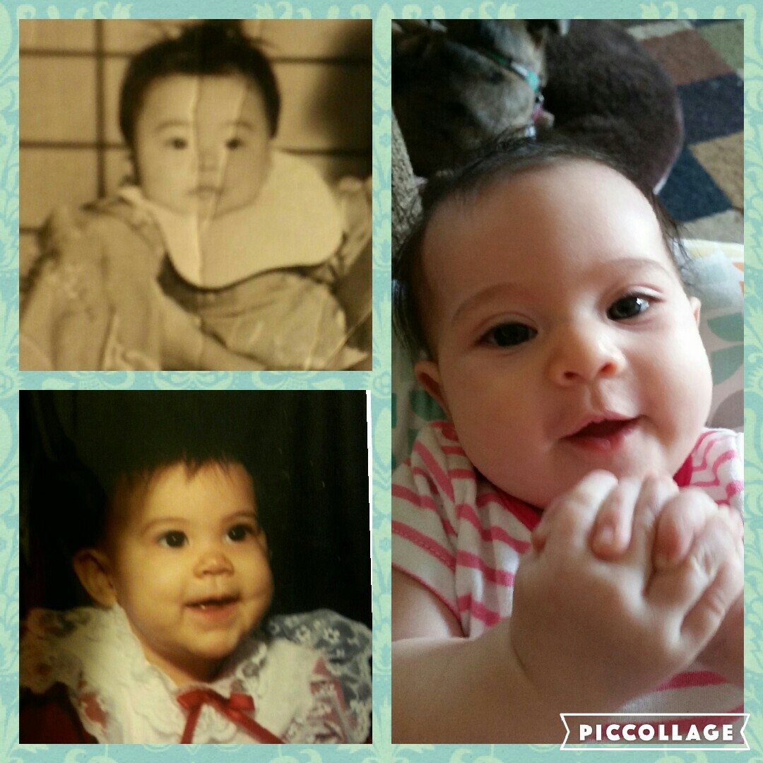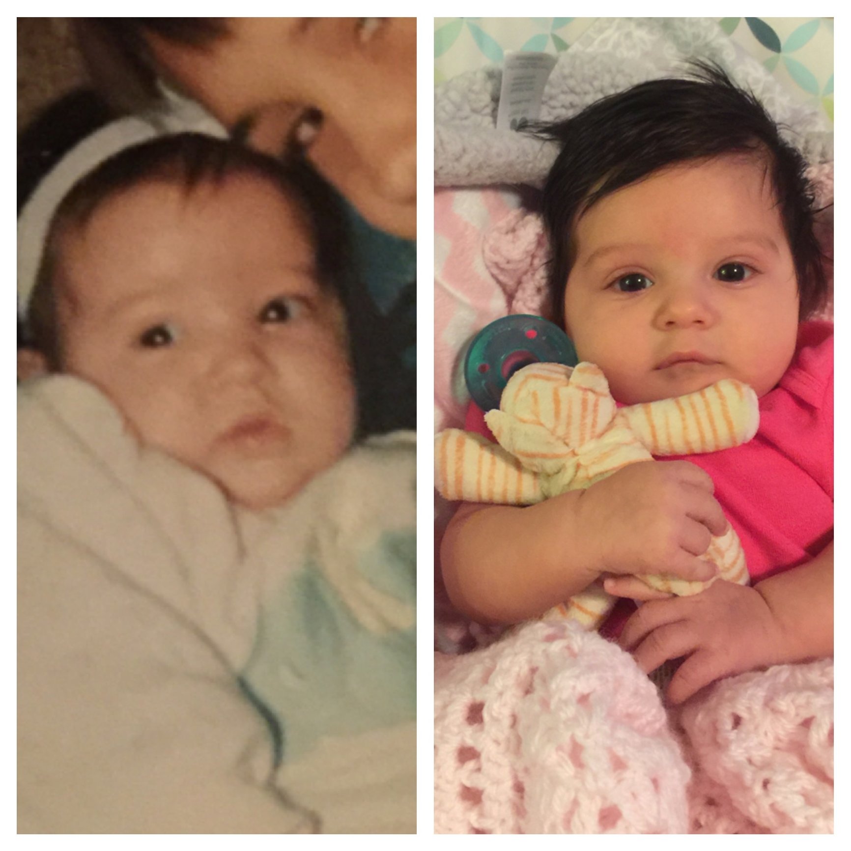 I thought it would be fun to post a photo of us as a baby next to our LO's photos!!! To see the differences and/or similarities! (Mainly an excuse to show off our LOs but HEY! It's also fun for all!!)