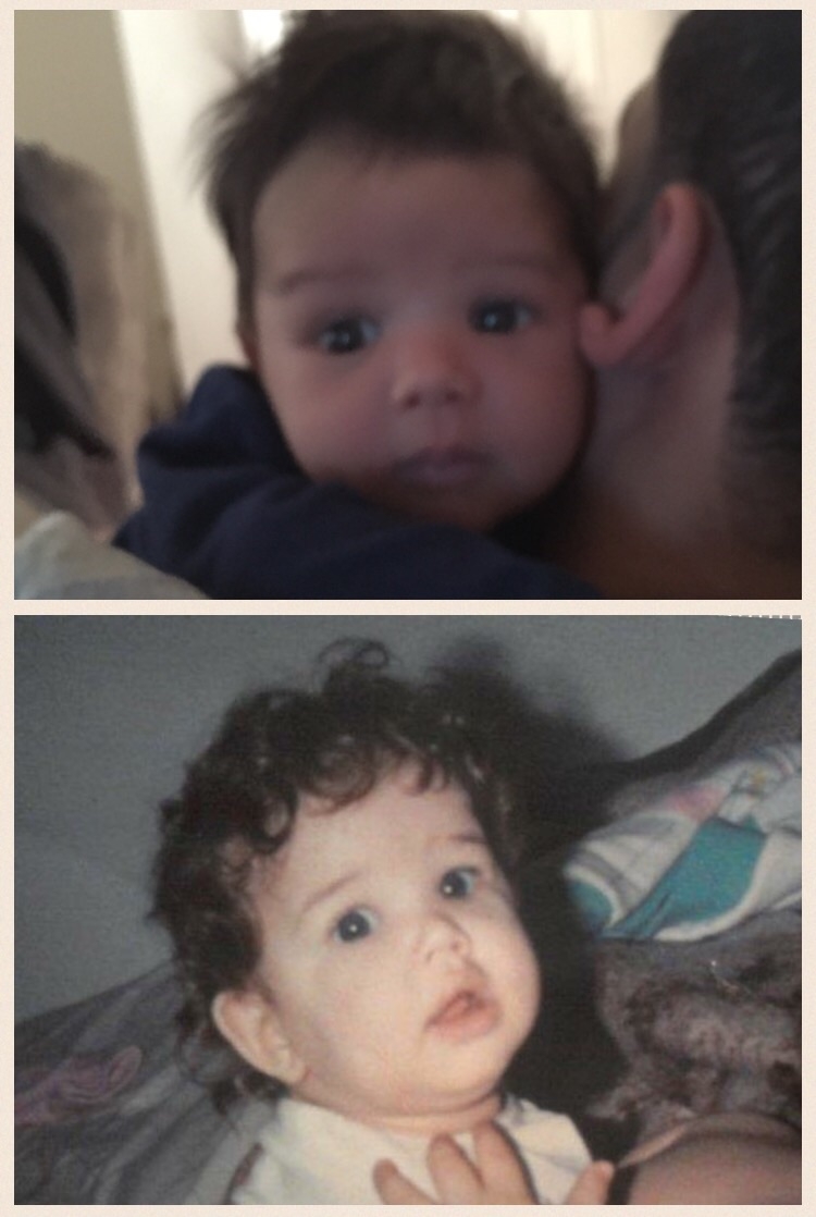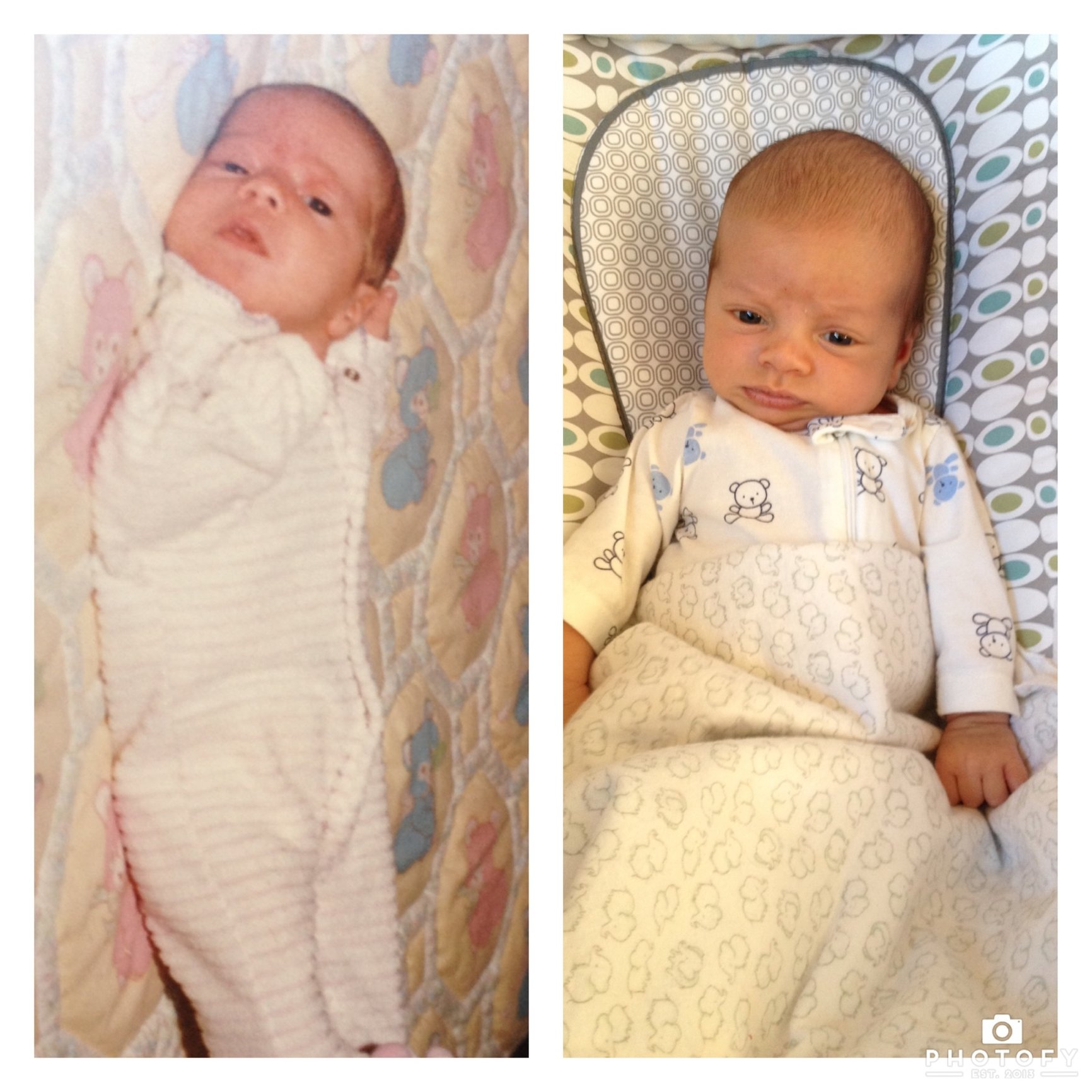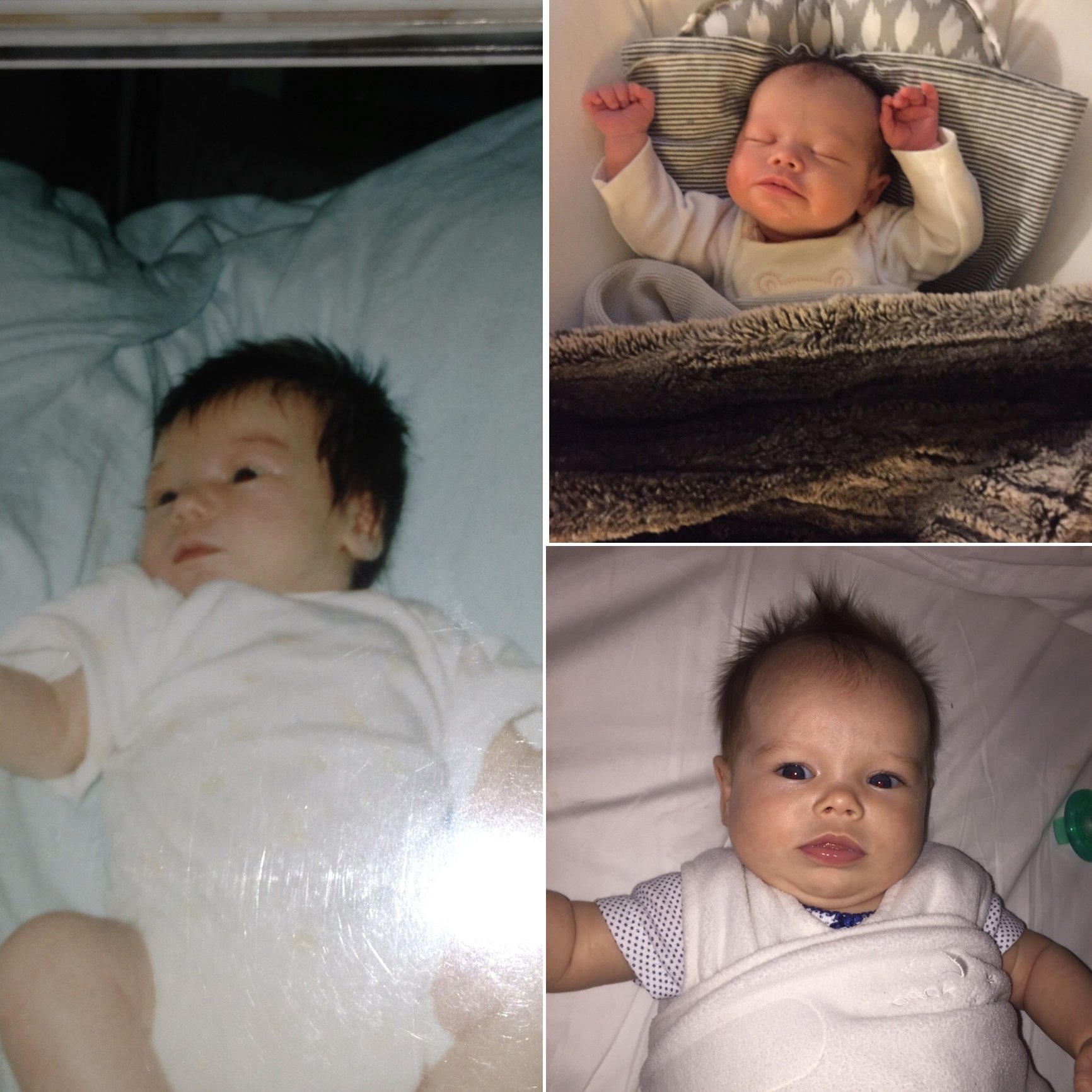 I'm top and Henry is bottom. He's starting to look so much like me it's crazy. He was SO's miniature for the first few weeks.