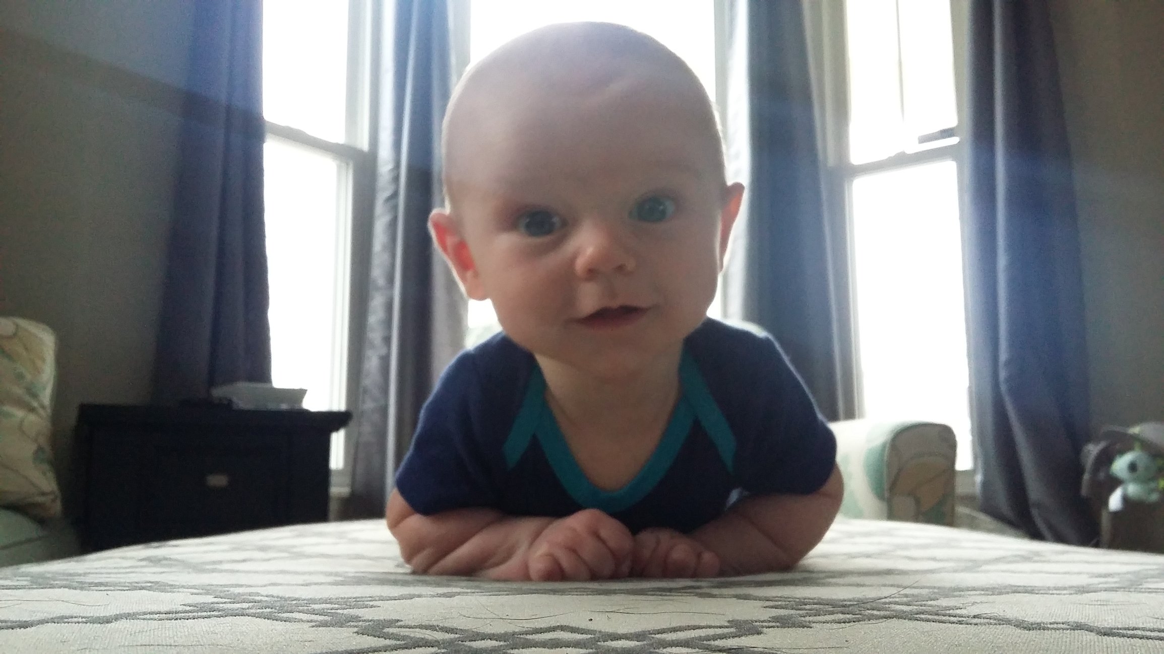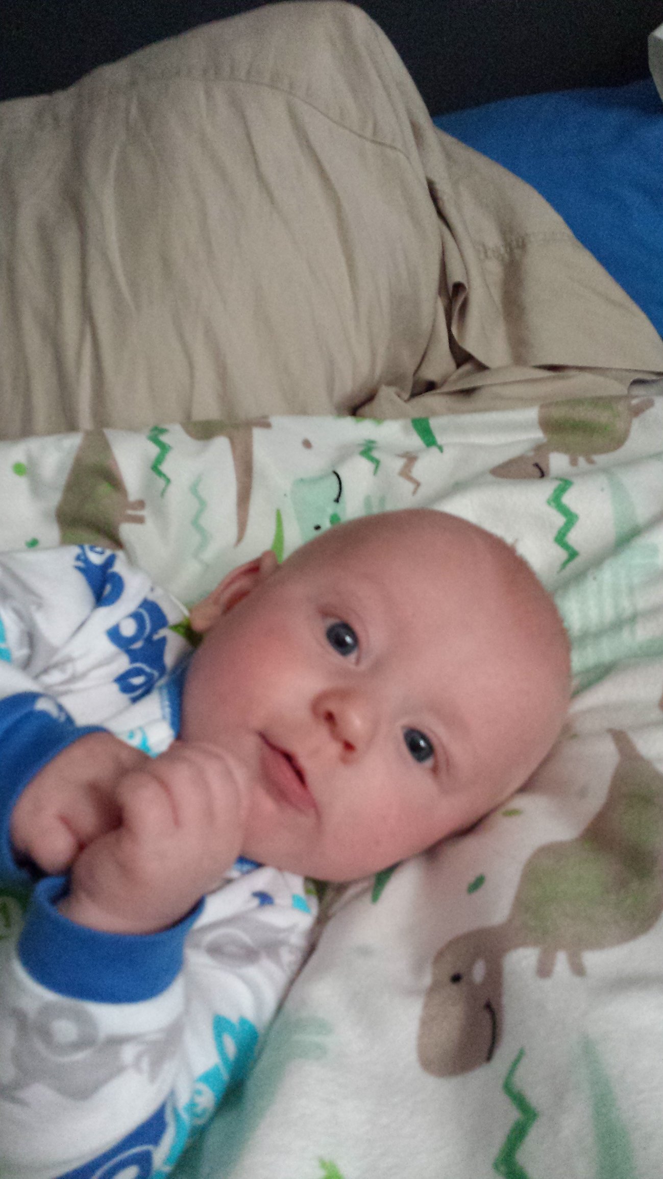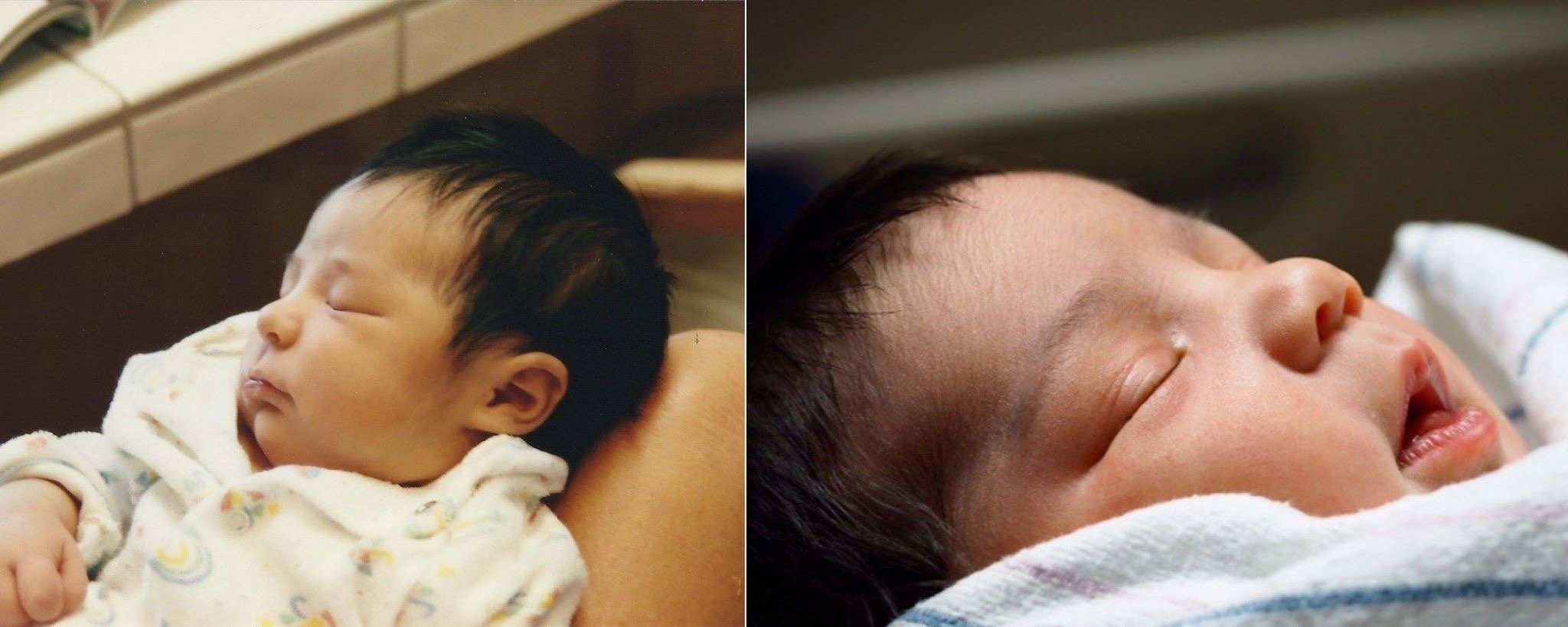 I'm top and Henry is bottom. He's starting to look so much like me it's crazy. He was SO's miniature for the first few weeks.