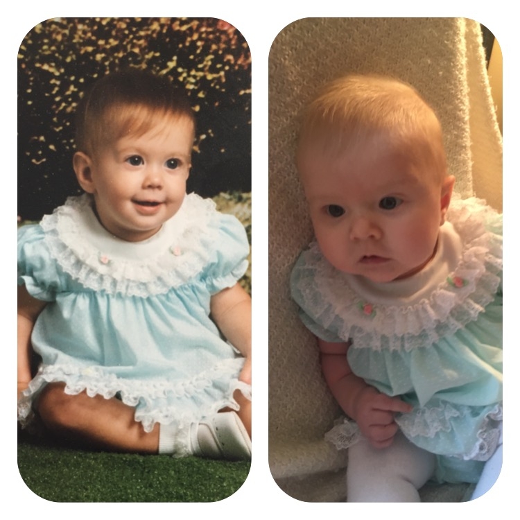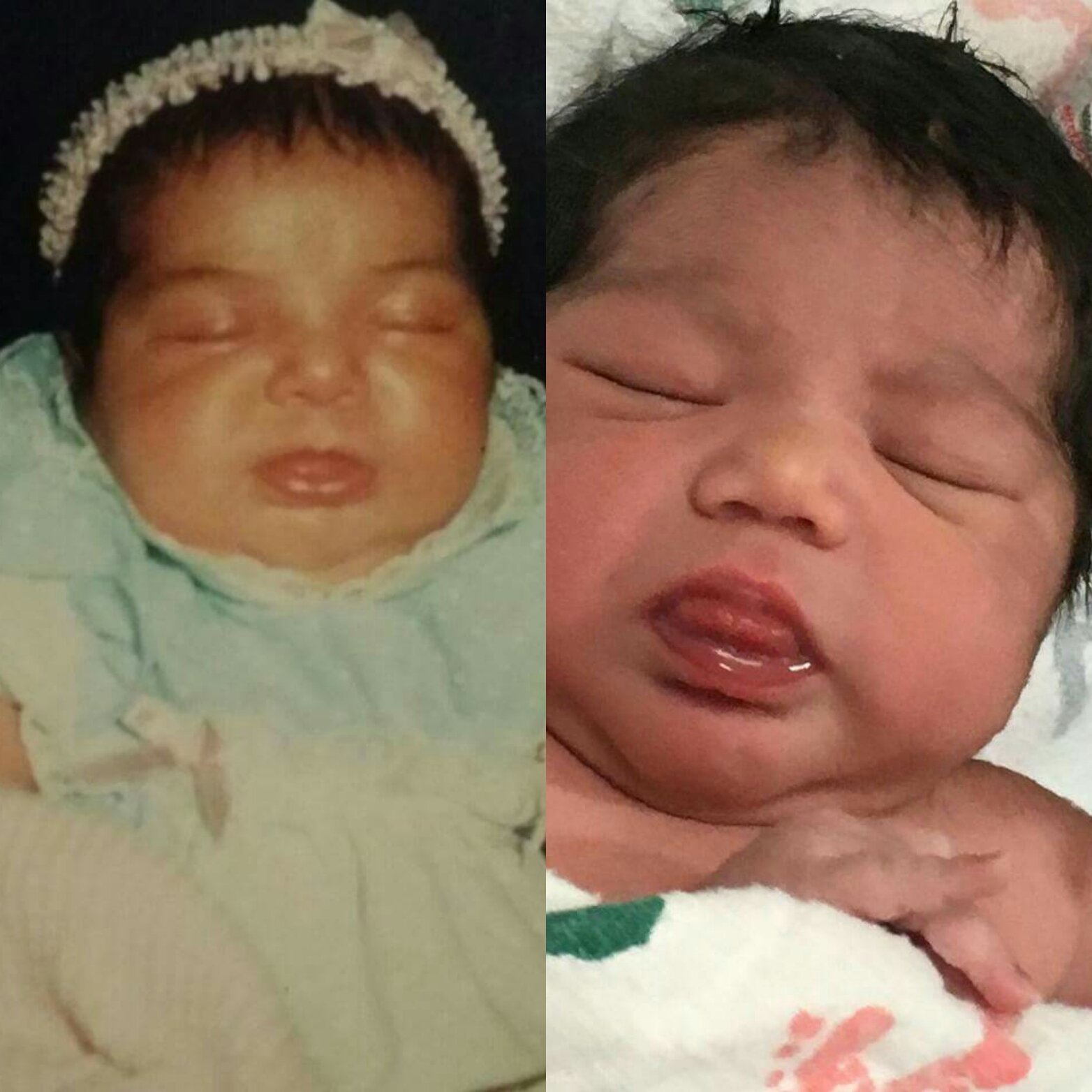 Apparently we have big tongues lol. Left is me, right is DD. She definitely doesn't look like me anymore.