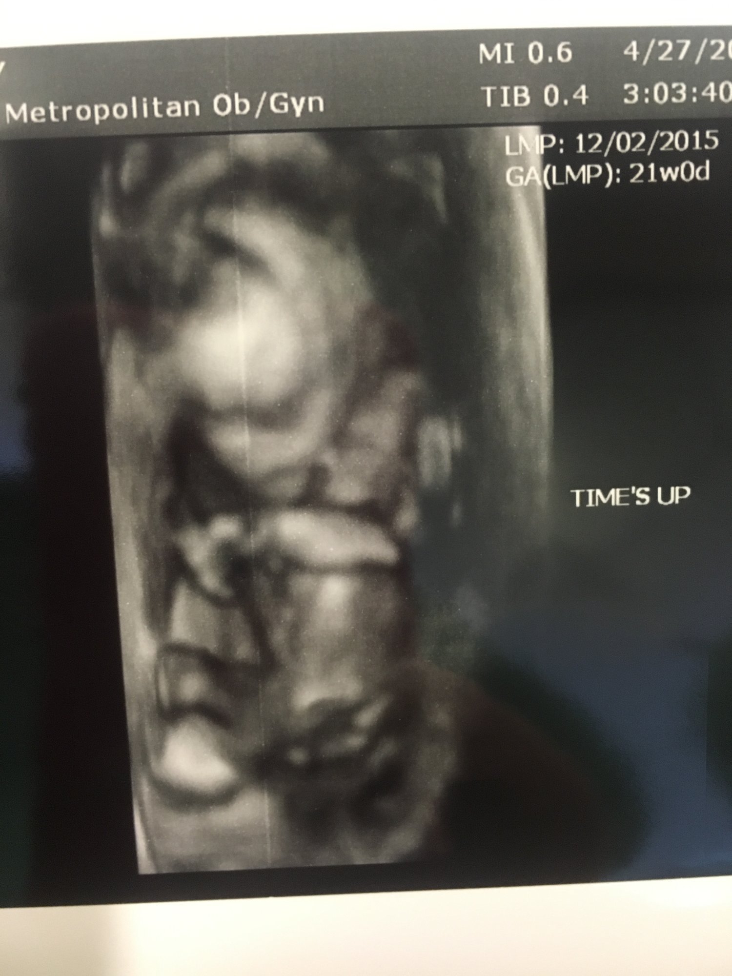 Can't believe I have a living breathing tiny human being inside of me! Baby was swallowing and putting hands on head. I also measured a week ahead! I also think I accidentally saw a penis when we are supposed to be team green! I am so excited!