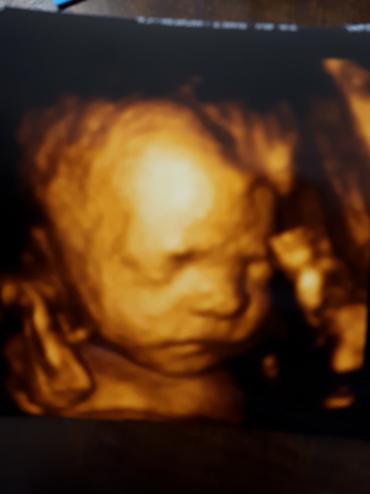 I gave his DH part of his bday present - a trip to the 3D & 4D scan and we were able to see features of our little love. She, so far, is looking more like her momma.
