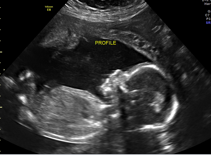 Baby H at my 18w U/S yesterday... After over an hour of looking and measuring and not being able to see the sex due to LO keeping the legs crossed, I was told to empty my bladder and we would try again. LO not only uncrossed it's legs, but completely flipped over... It's a Girl!