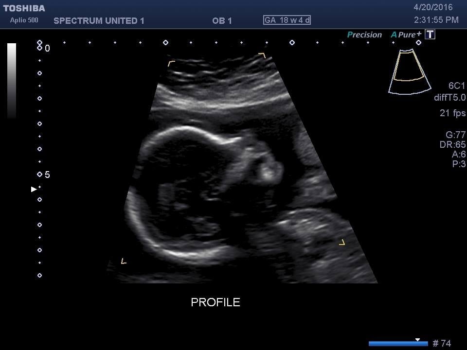 Had my anatomy scan today. She's measuring a little on the small side, 9 oz at 19w 5 d, which they said is in the 12th percentile, but otherwise she's doing great!