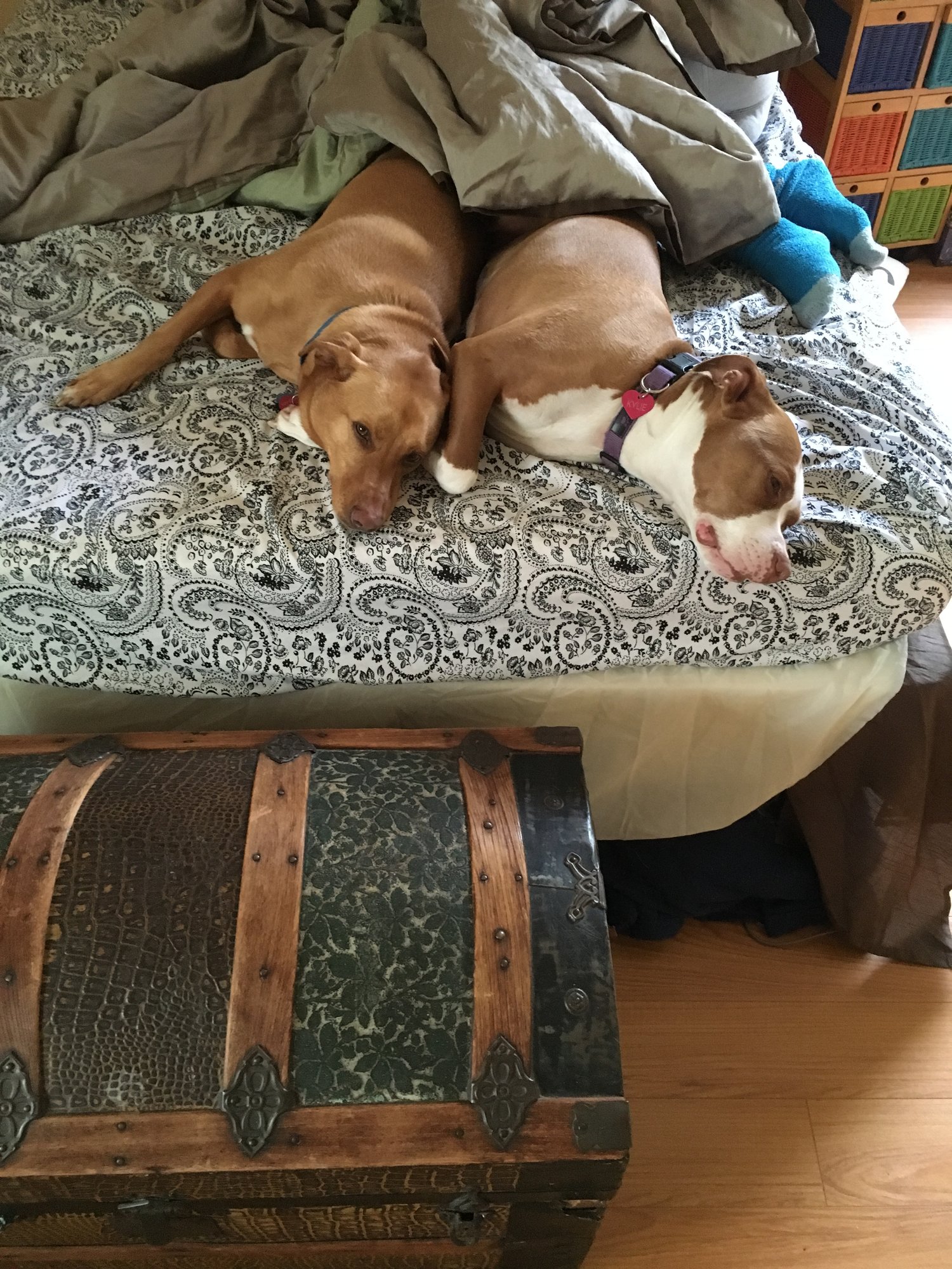 I posed the question, are your fur babies acting differently around you?  My big guy definitely knows something is up.  He is FAR more snugly with me than normal.  I don't get the sense the little one knows anything is different.