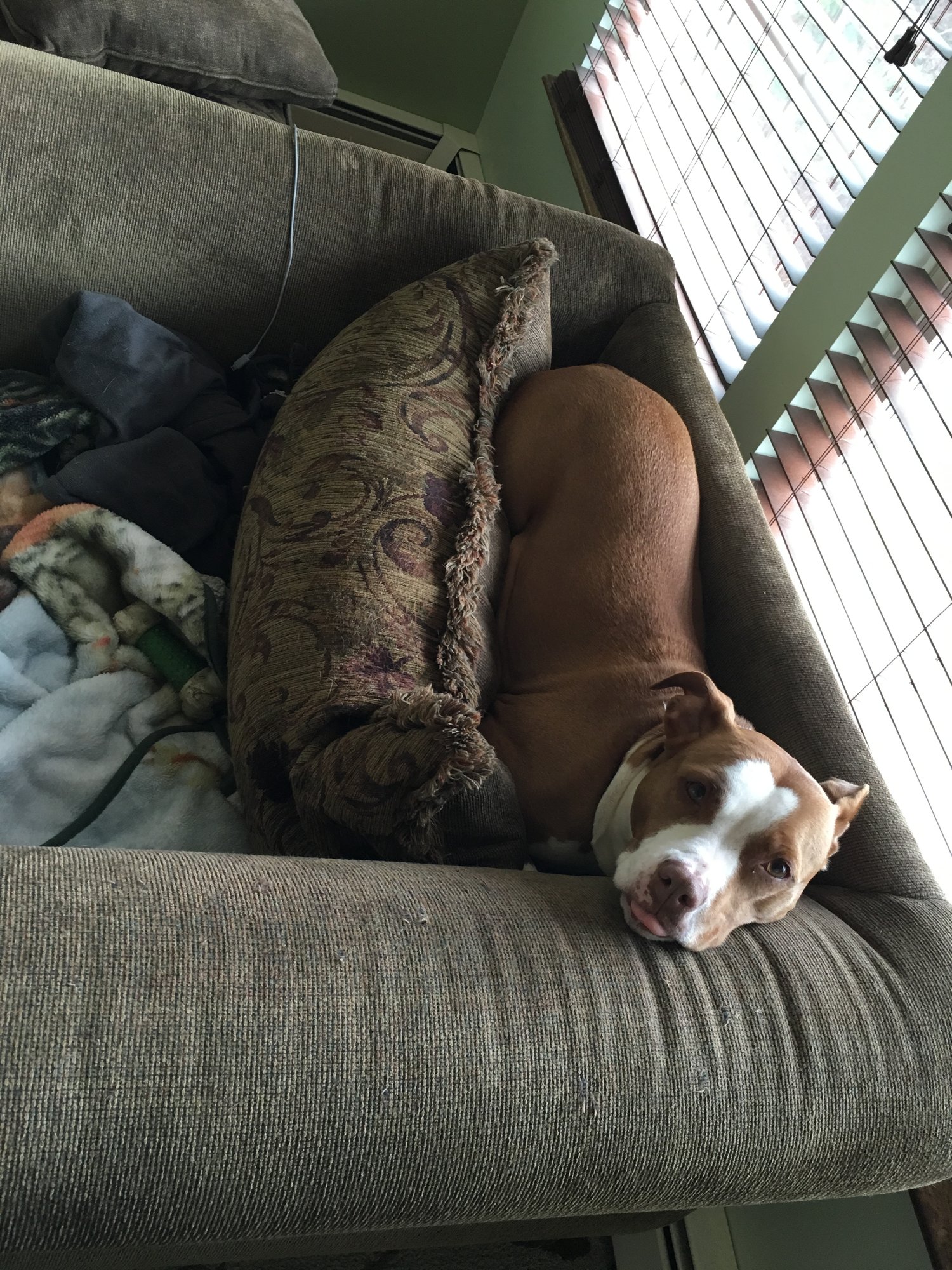Edit to add right after I sent this he heard something outside and was sleeping under the table we have in here. Up he went, smacking his head on the table. This is a daily occurrence. *sigh* One of these days he will learn.