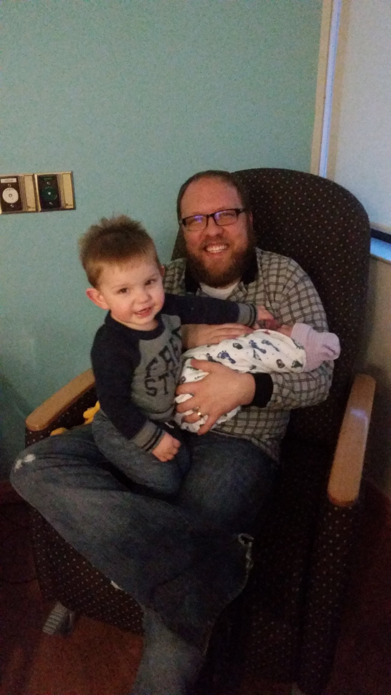 I woke up at midnight with contractions. I went downstairs to give dh time to rest and to time the contractions. They started out about 4 minutes apart and within the hour they were down to about 3 minutes apart. Since we had an hour drive to the birthing center I figured it was time to wake dh. I took a shower and grabbed last minute stuff while he got our 22 month old up and ready.